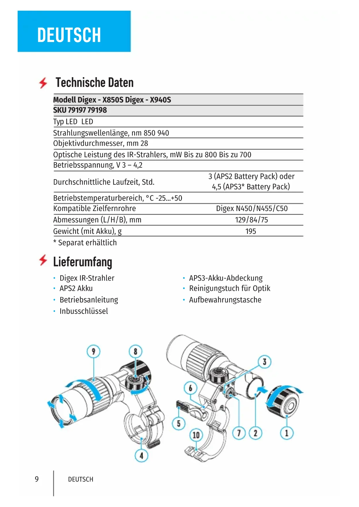 - Digex IR-Strahler • APS3-Akku-Abdeckung
