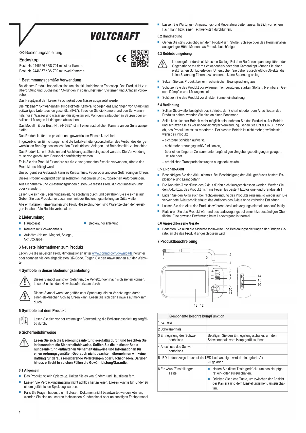 BS702SE - Endoskop VOLTCRAFT - Kostenlose Bedienungsanleitung