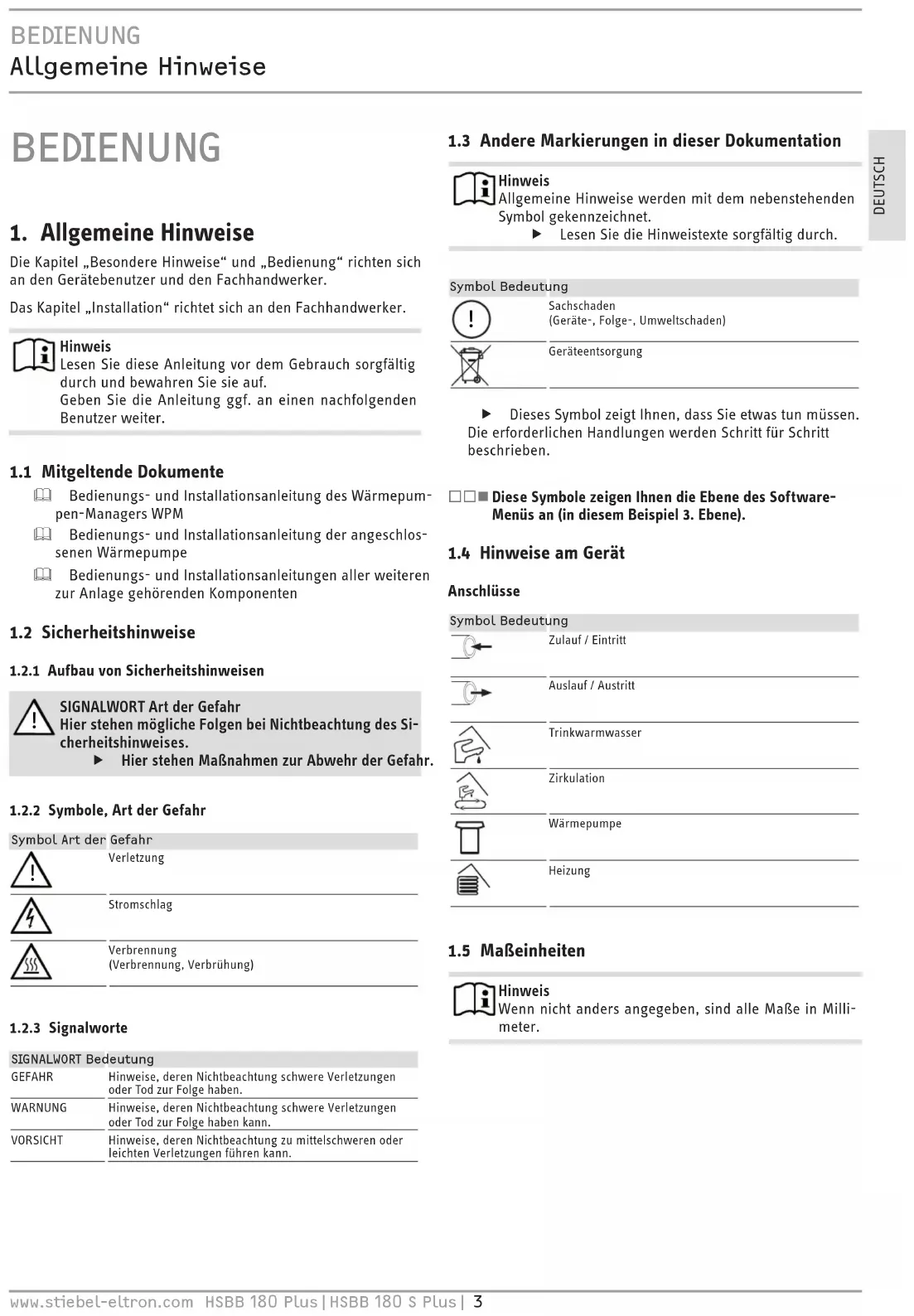 Allgemeine Hinweise DEUTSCHwww.stiebel-eltron.com HSBB 180 Plus|HSBB 180 S Plus| 3 BEDIENUNG