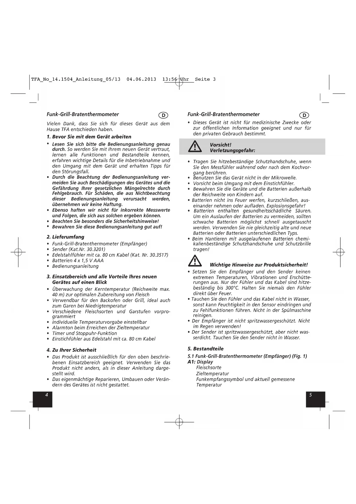 TFA_No_14.1504_Anleitung_05/13 04.06.2013 13:56 Uhr Seite 24 5 Funk-Grill-Bratenthermometer