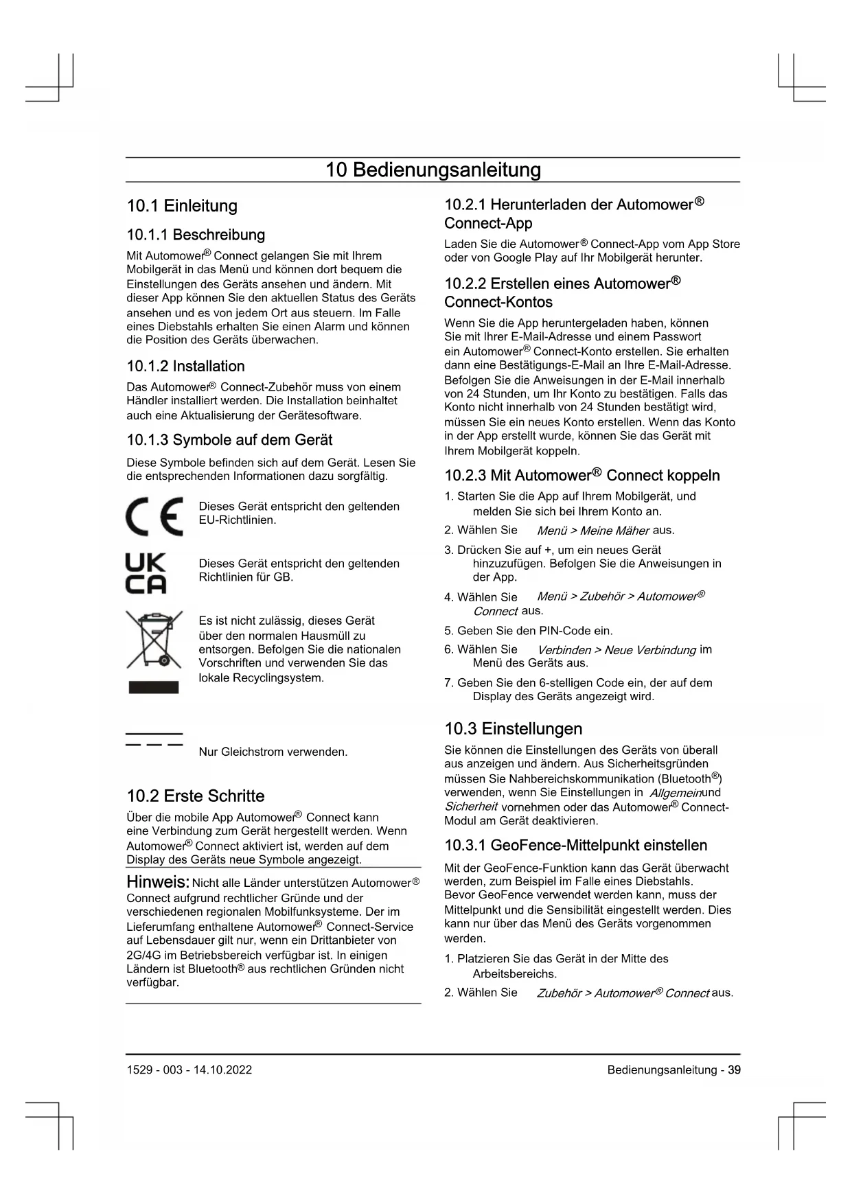 40 - Bedienungsanleitung 1529 - 003 - 14.10.202210.6 EU-Konformitätserklärung, Originalversion