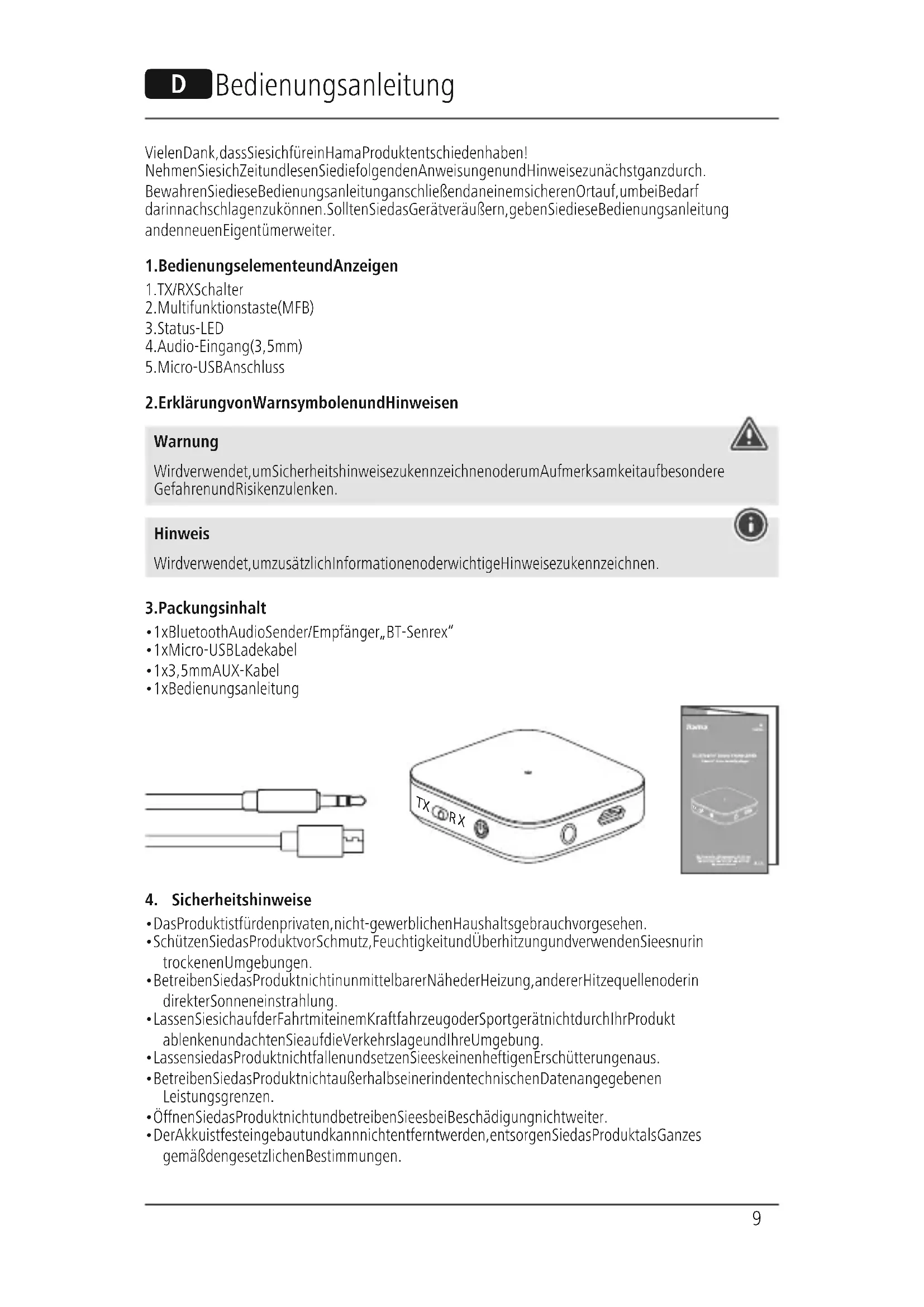 BEDIENUNGSANLEITUNG BTSenrex HAMA