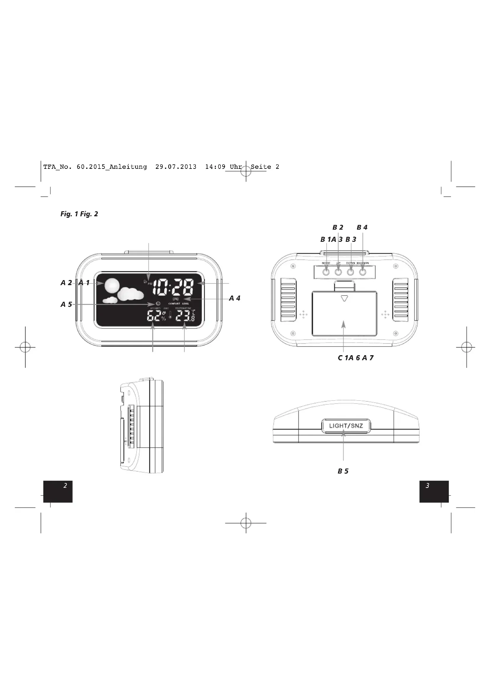 B 1A 3 B 2 B 3 B 4 B 5 C 1A 6 A 7 TFA_No. 60.2015_Anleitung 29.07.2013 14:09 Uhr Seite 254 Digitalwecker mit Raumklima