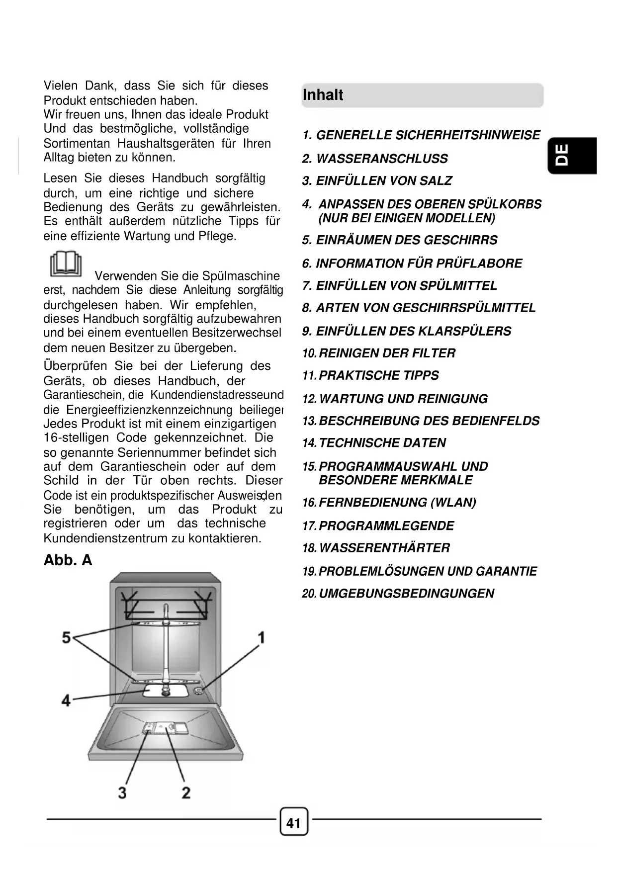 Verwenden Sie die Spülmaschine erst, nachdem Sie diese Anleitung sorgfältig durchgelesen haben. Wir empfehlen, dieses Handbuch sorgfältig aufzubewahren und bei einem eventuellen Besitzerwechsel dem neuen Besitzer zu übergeben.