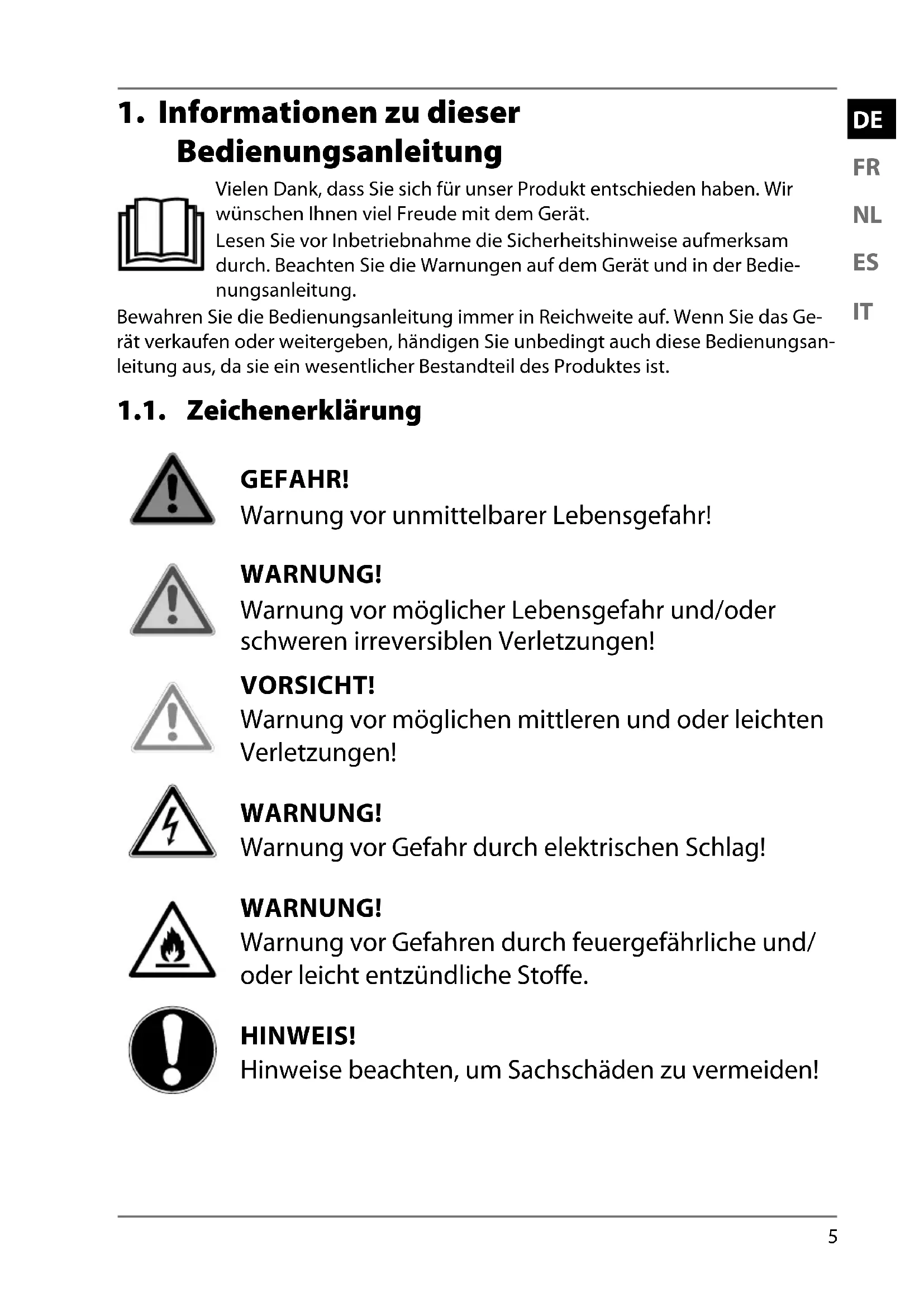 1. Informationen zu dieser Bedienungsanleitung ........................................ 5