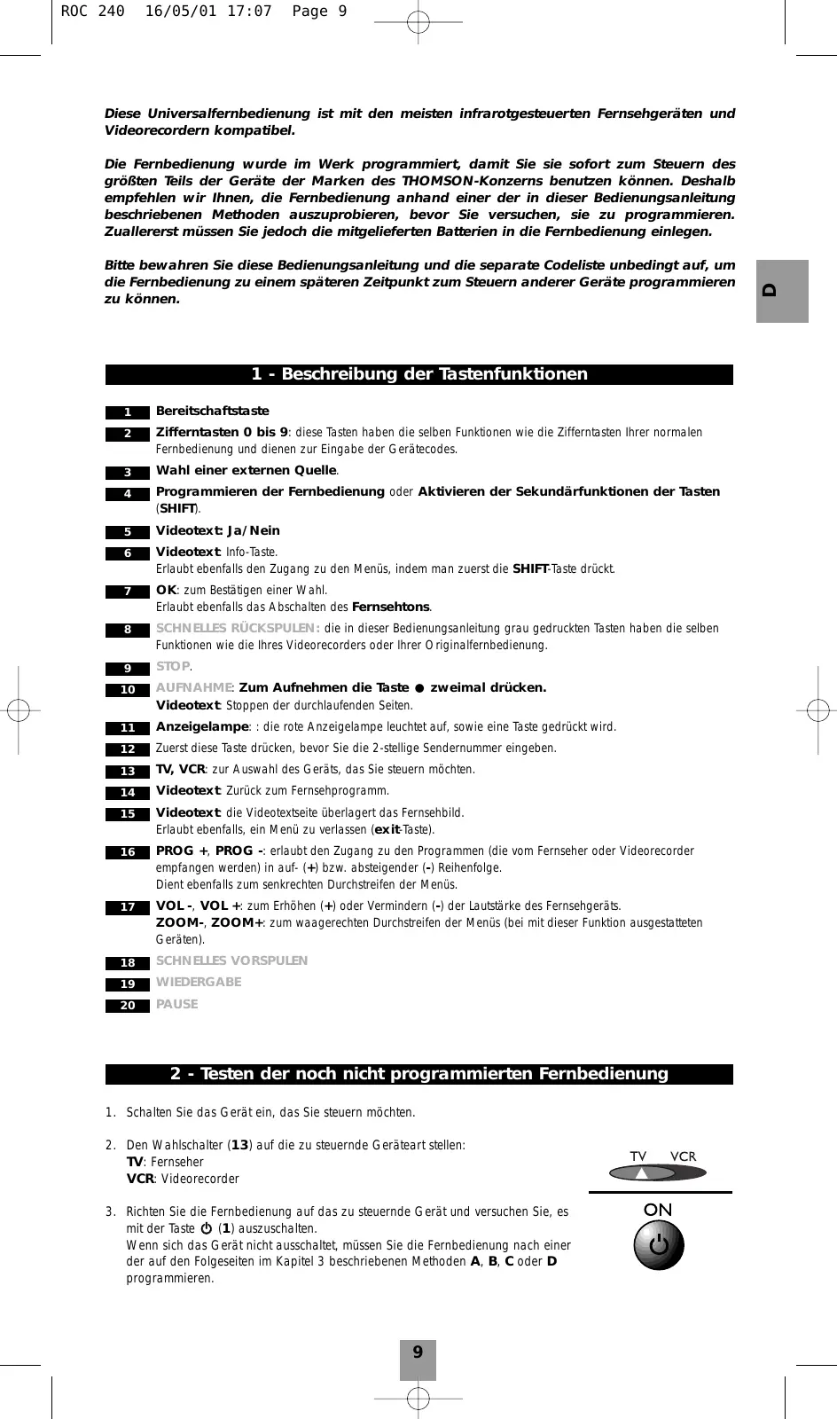 BEDIENUNGSANLEITUNG ROC 240 THOMSON