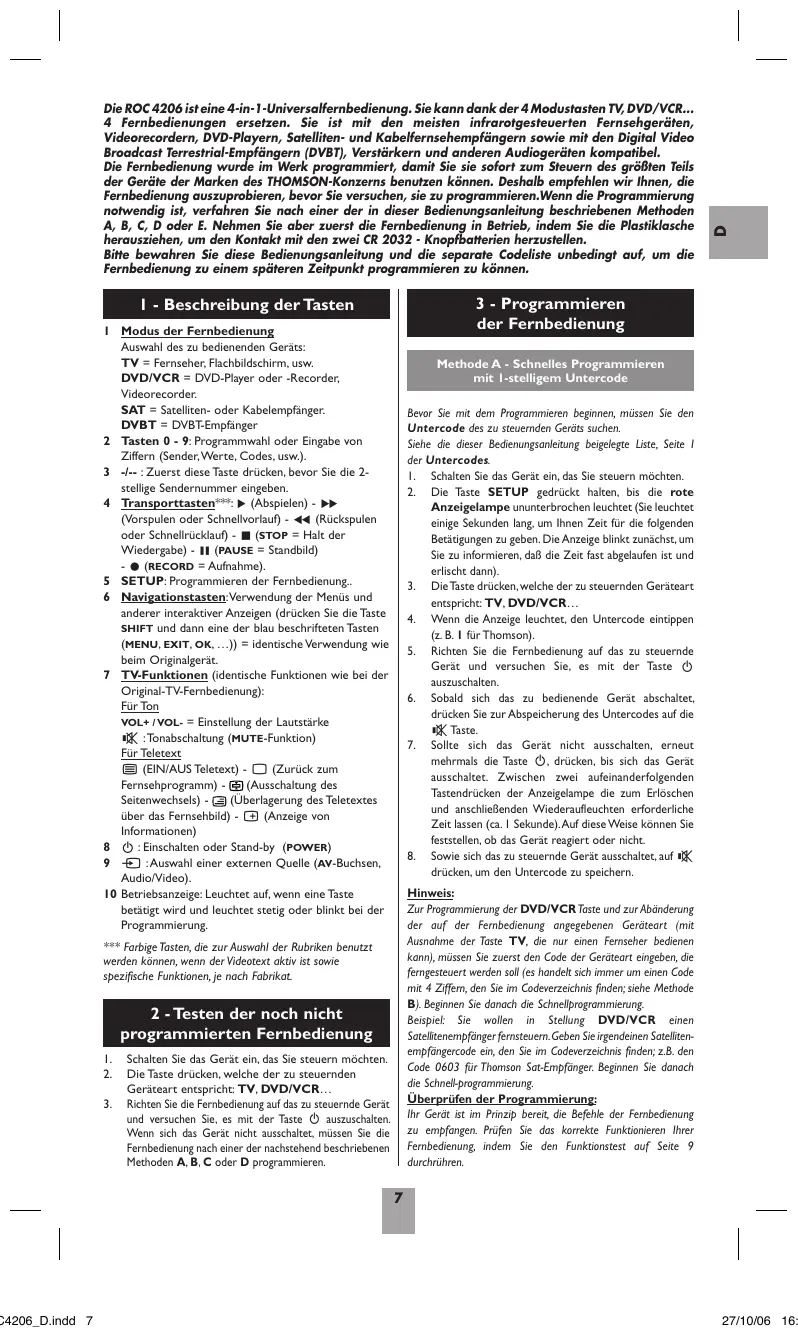 BEDIENUNGSANLEITUNG ROC 4206 THOMSON