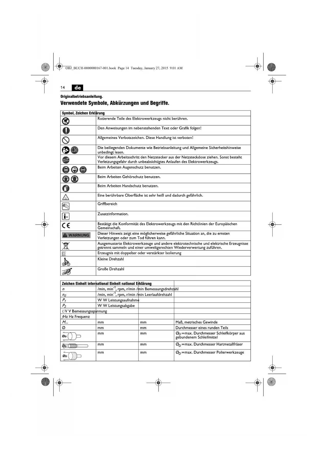 Basis- und abgeleitete Einheiten aus dem Internationalen Einheitensystem SI. Zeichen Einheit international Einheit national Erklärung WARNUNG OBJ_BUCH-0000000167-001.book Page 15 Tuesday, January 27, 2015 9:01 AM16