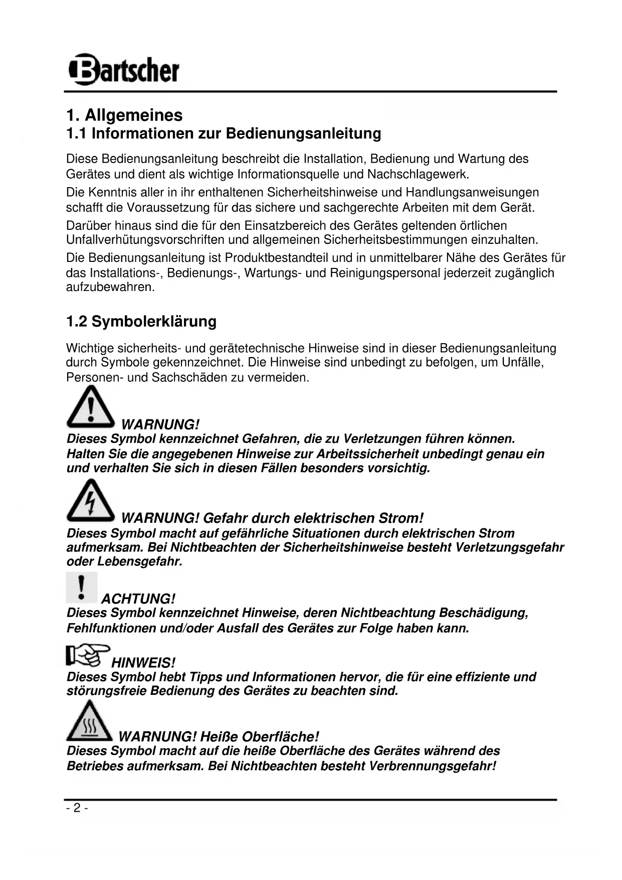 Finden Sie kostenlos die Bedienungsanleitung des Geräts A120401 BARTSCHER als PDF.