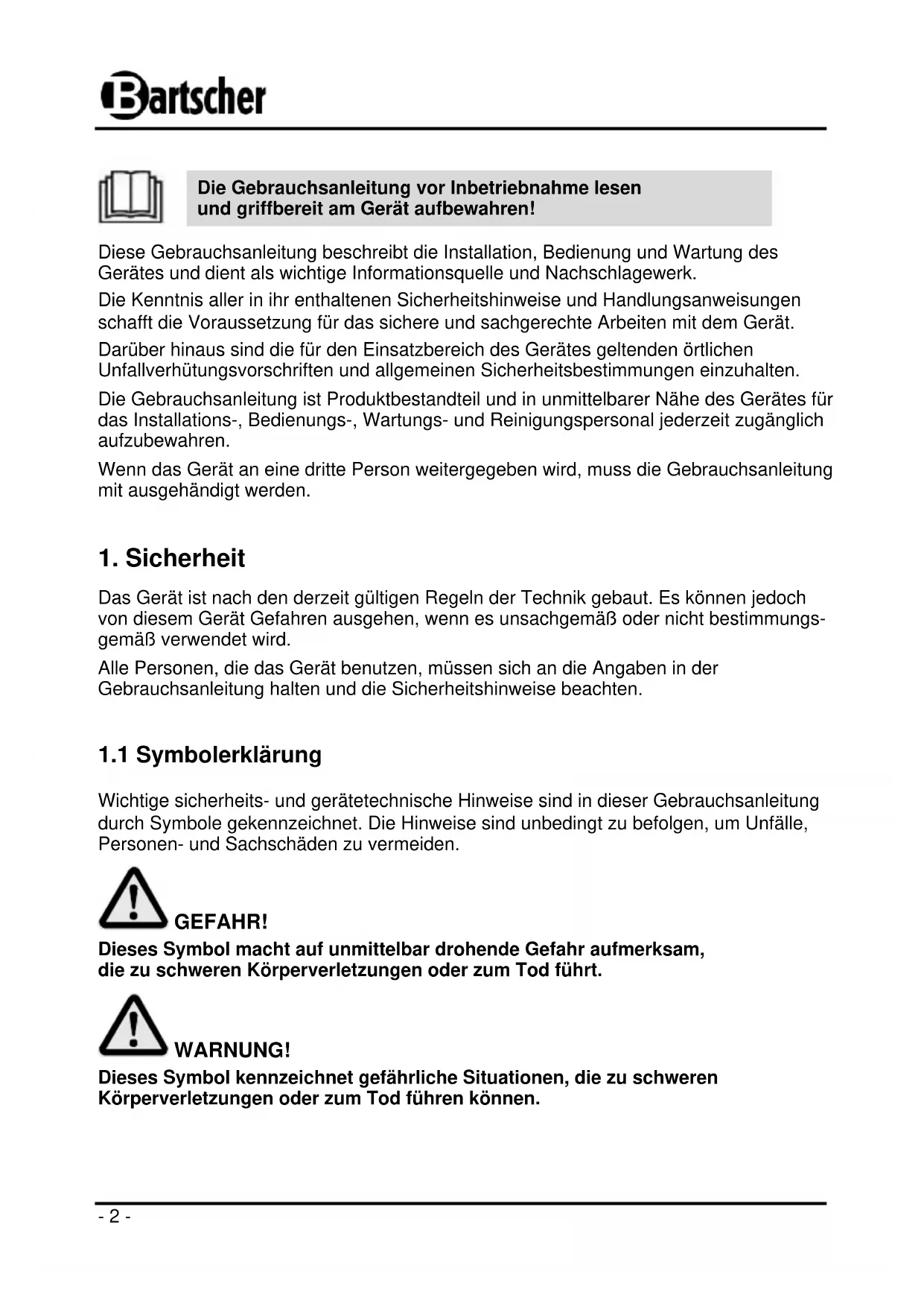 BEDIENUNGSANLEITUNG GE 25 BARTSCHER