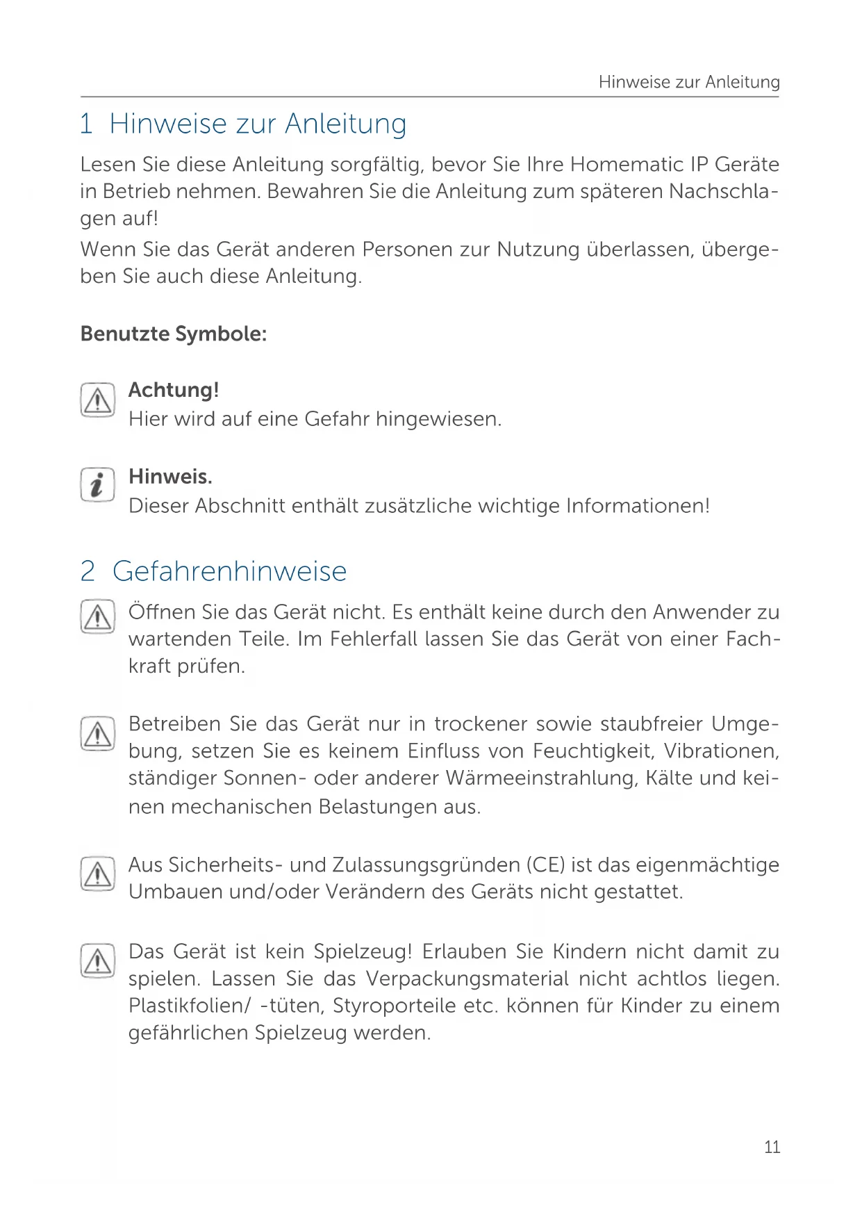 Soll-Temperatur Prg Offset AUTO MANU BOOST Mo Tu We Th Fr Sa Su Uhrzeit und Datum* PrgOffsetAUTOMANUBOOST Mo Tu We Th Fr Sa Su Bediensperre* PrgOffsetAUTOMANUBOOST Mo Tu We Th Fr Sa Su Fenster-auf-Symbol PrgOffsetAUTOMANUBOOST Mo Tu We Th Fr Sa Su Funkübertragung Prg Offset AUTOMANUBOOST Mo Tu We Th Fr Sa Su Leere Batterien PrgOffsetAUTOMANUBOOST Mo Tu We Th Fr Sa Su Urlaubsmodus* PrgOffset AUTO MANUBOOST Mo Tu We Th Fr Sa Su Automatischer Betrieb* PrgOffset AUTO MANU BOOST Mo Tu We Th Fr Sa Su Manueller Betrieb* Prg Offset AUTO MANU BOOST Mo Tu We Th Fr Sa Su Boost-Modus Prg Offset AUTOMANUBOOST Mo Tu We Th Fr Sa Su Oset-Temperatur* Prg OffsetAUTOMANUBOOST Mo Tu We Th Fr Sa Su Programmierung eines Heizprofils* PrgOffsetAUTOMANUBOOSTMo Tu We Th Fr Sa Su06121824 Wochentage* s. „6 Konfigurationsmenü“ auf Seite 2314 Allgemeine Systeminformationen 4 Allgemeine Systeminformationen Dieses Gerät ist Teil des Homematic IP Smart-Home-Systems und kom- muniziert über das HomematicIP Funkprotokoll. Alle Geräte des Systems können komfortabel und individuell per Smartphone über die Home- maticIP App konfiguriert werden. Alternativ haben Sie die Möglichkeit, HomematicIP Geräte über die Zentrale CCU3 oder in Verbindung mit vielen Partnerlösungen zu betreiben. Welcher Funktionsumfang sich in- nerhalb des Systems im Zusammenspiel mit weiteren Komponenten er- gibt, entnehmen Sie bitte dem HomematicIP Anwenderhandbuch. Alle technischen Dokumente und Updates finden Sie stets aktuell unter www. homematic-ip.com. 5 Inbetriebnahme