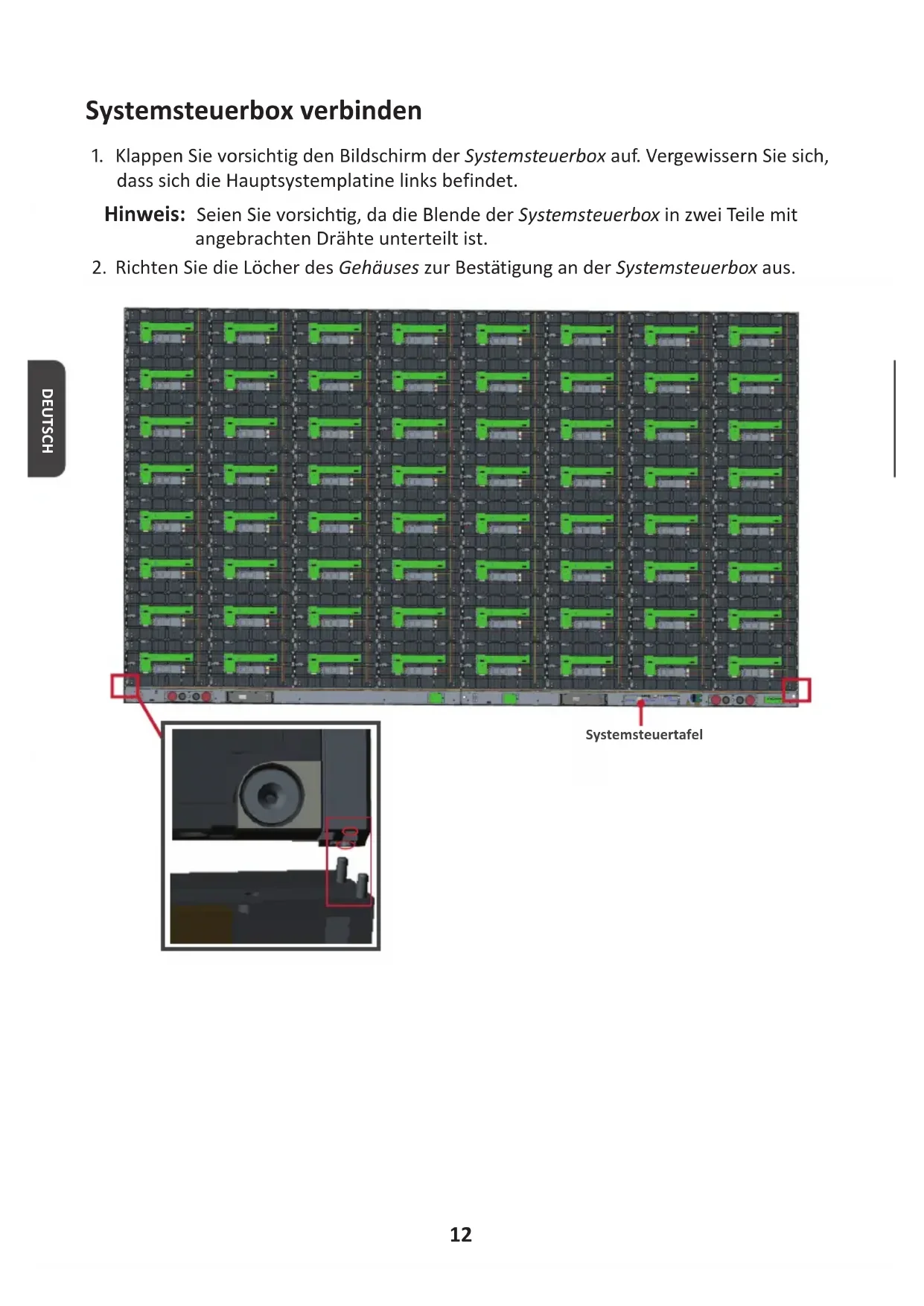 Sperrschraube Hinweis: 12 DEUTSCH Systemsteuerbox verbinden
