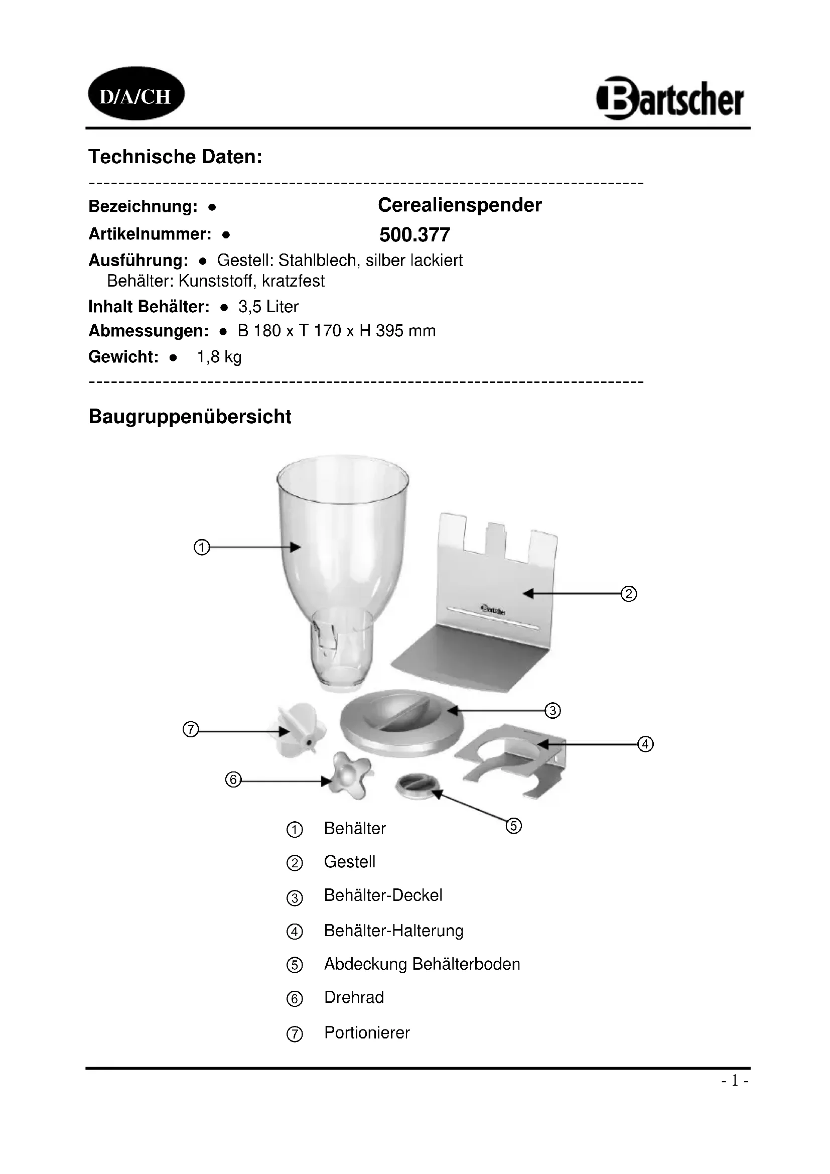 Finden Sie kostenlos die Bedienungsanleitung des Geräts 500377 BARTSCHER als PDF.