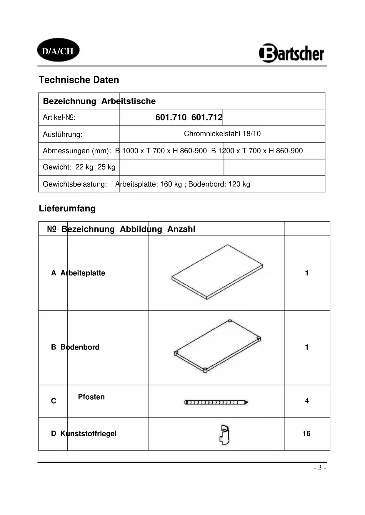 601710 - Tisch BARTSCHER - Kostenlose Bedienungsanleitung