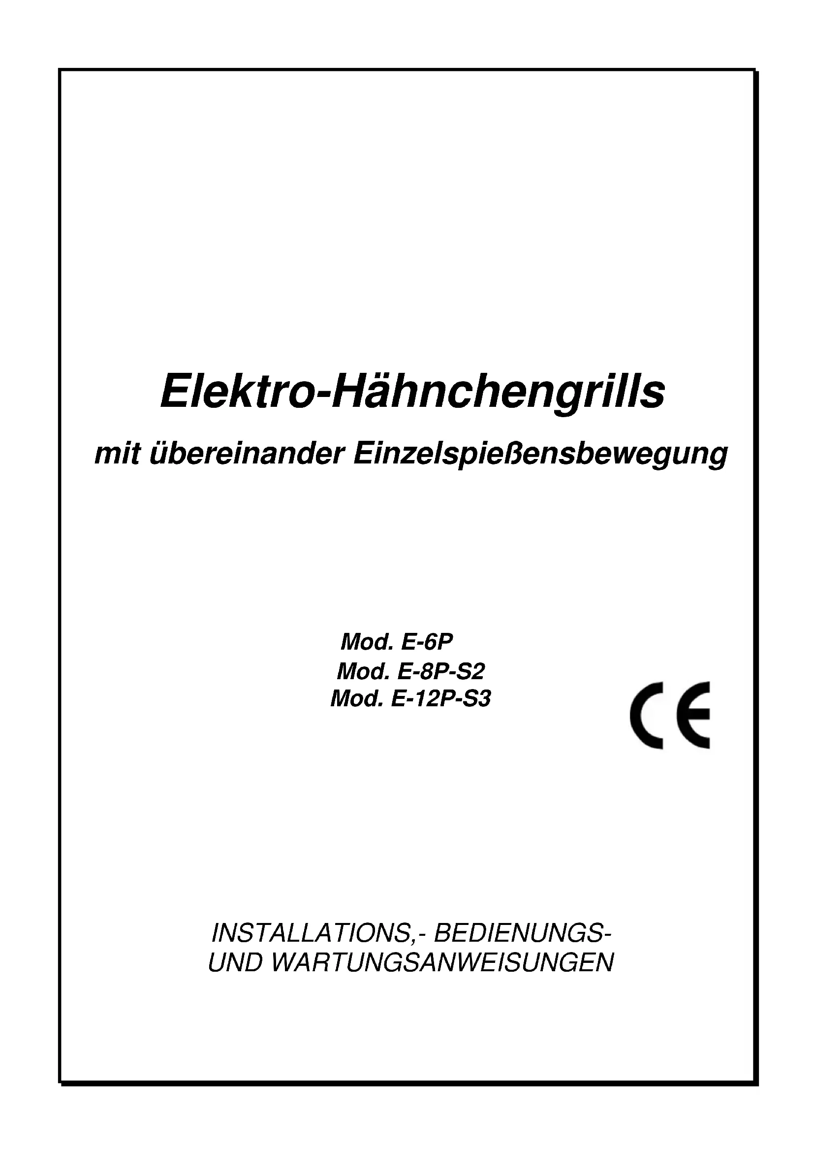 E8PS2 - Elektrischer Drehspieß BARTSCHER - Kostenlose Bedienungsanleitung