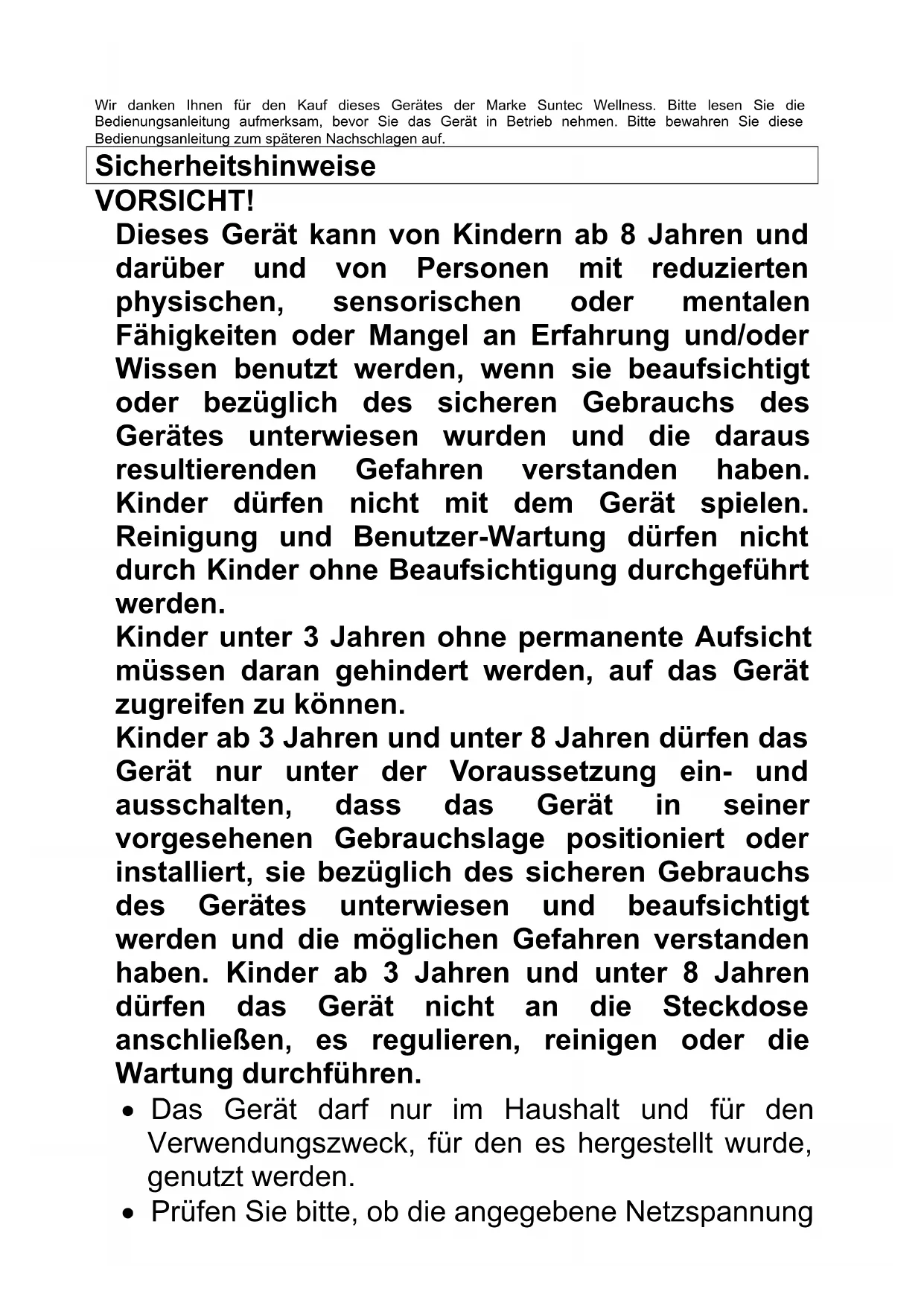 - Bitte lassen Sie das Gerät nicht unbeaufsichtigt solange es genutzt wird.