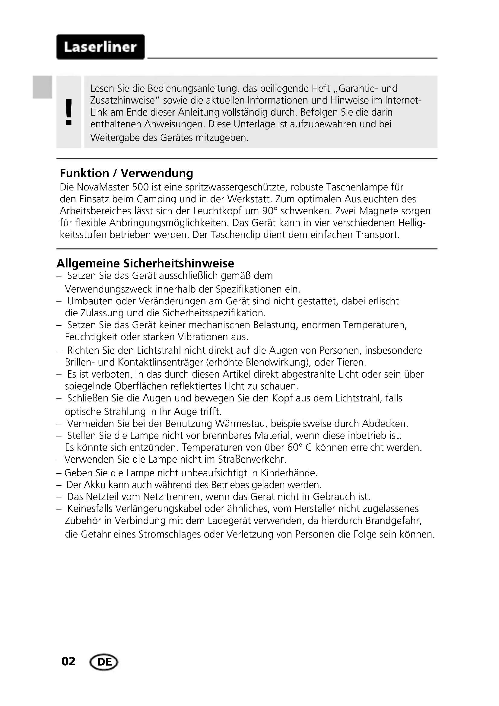 NovaMaster 500 - Taschenlampe Laserliner - Kostenlose Bedienungsanleitung