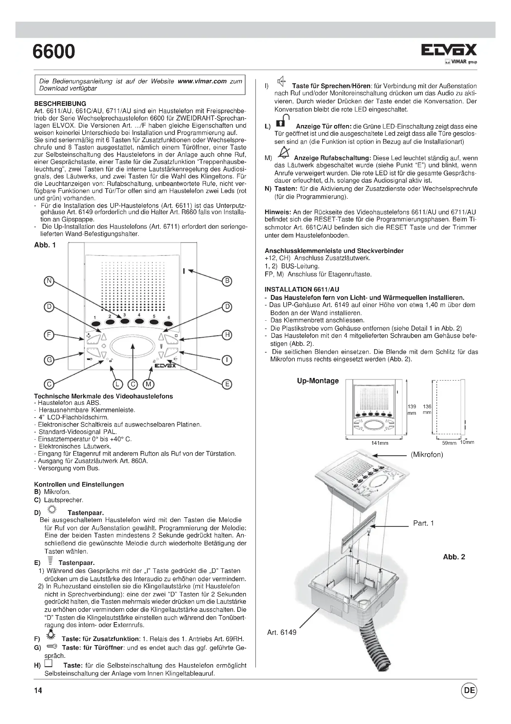 Finden Sie kostenlos die Bedienungsanleitung des Geräts ELVOX 6611AU Vimar als PDF.