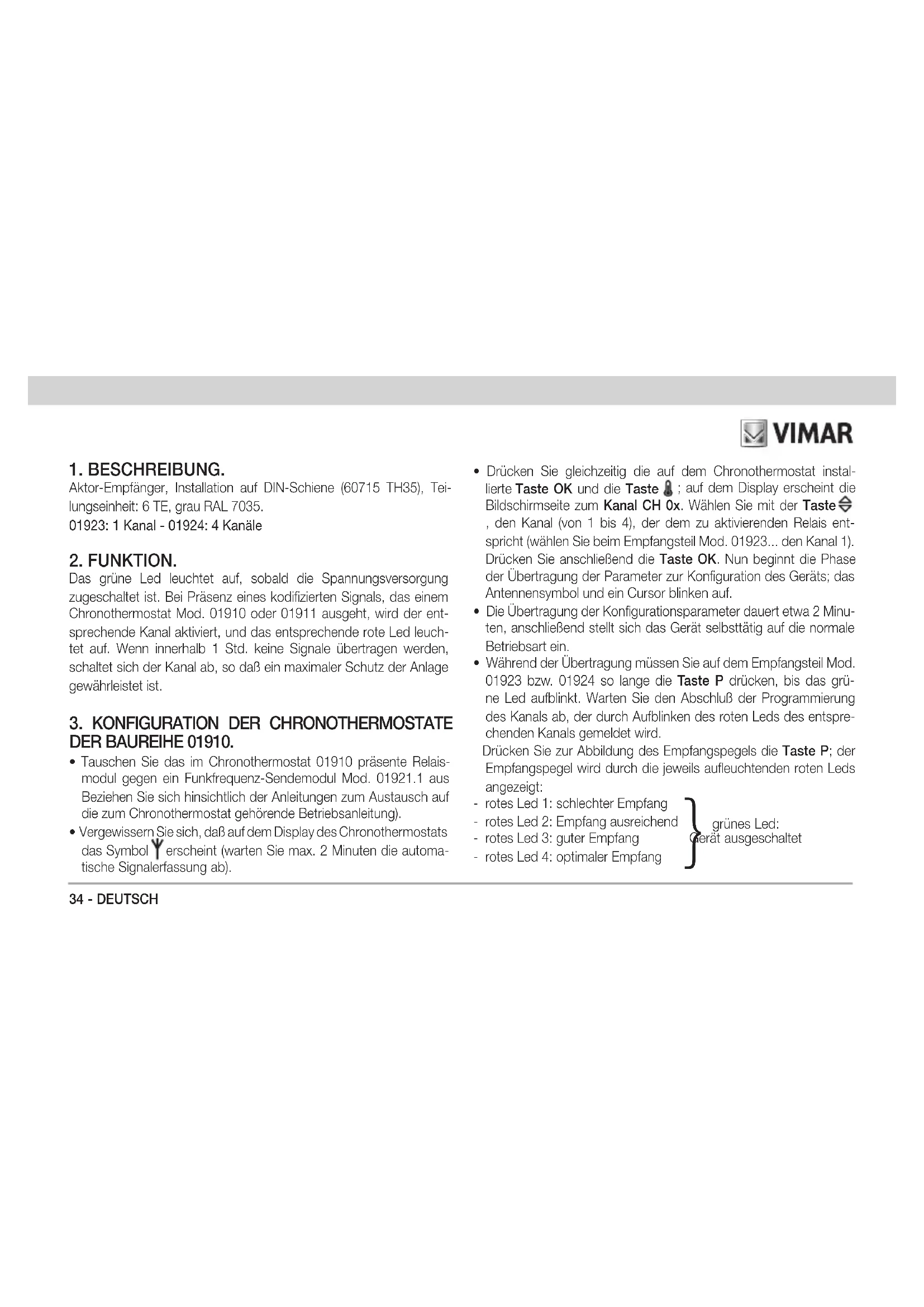 BEDIENUNGSANLEITUNG 01924 Vimar