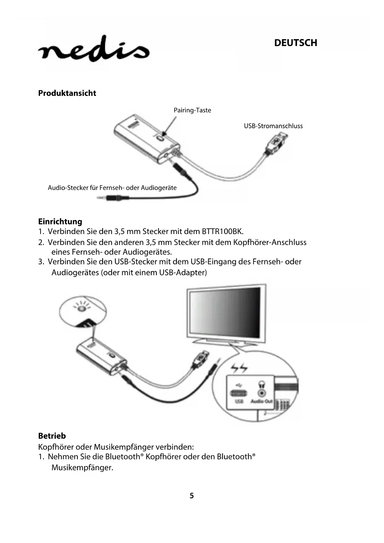 BTTR100BK - Empfänger NEDIS - Kostenlose Bedienungsanleitung