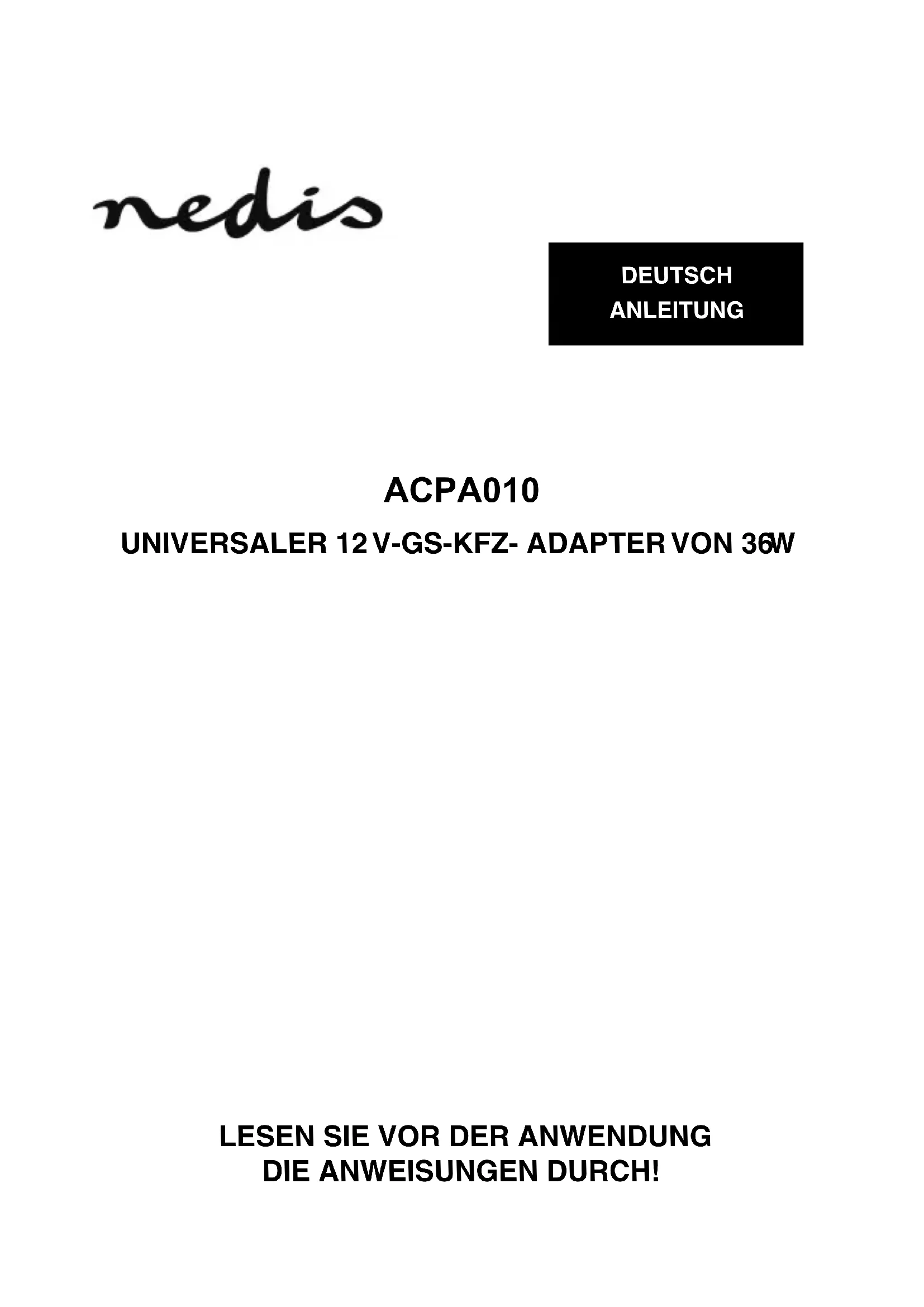 Finden Sie kostenlos die Bedienungsanleitung des Geräts ACPA010 NEDIS als PDF.