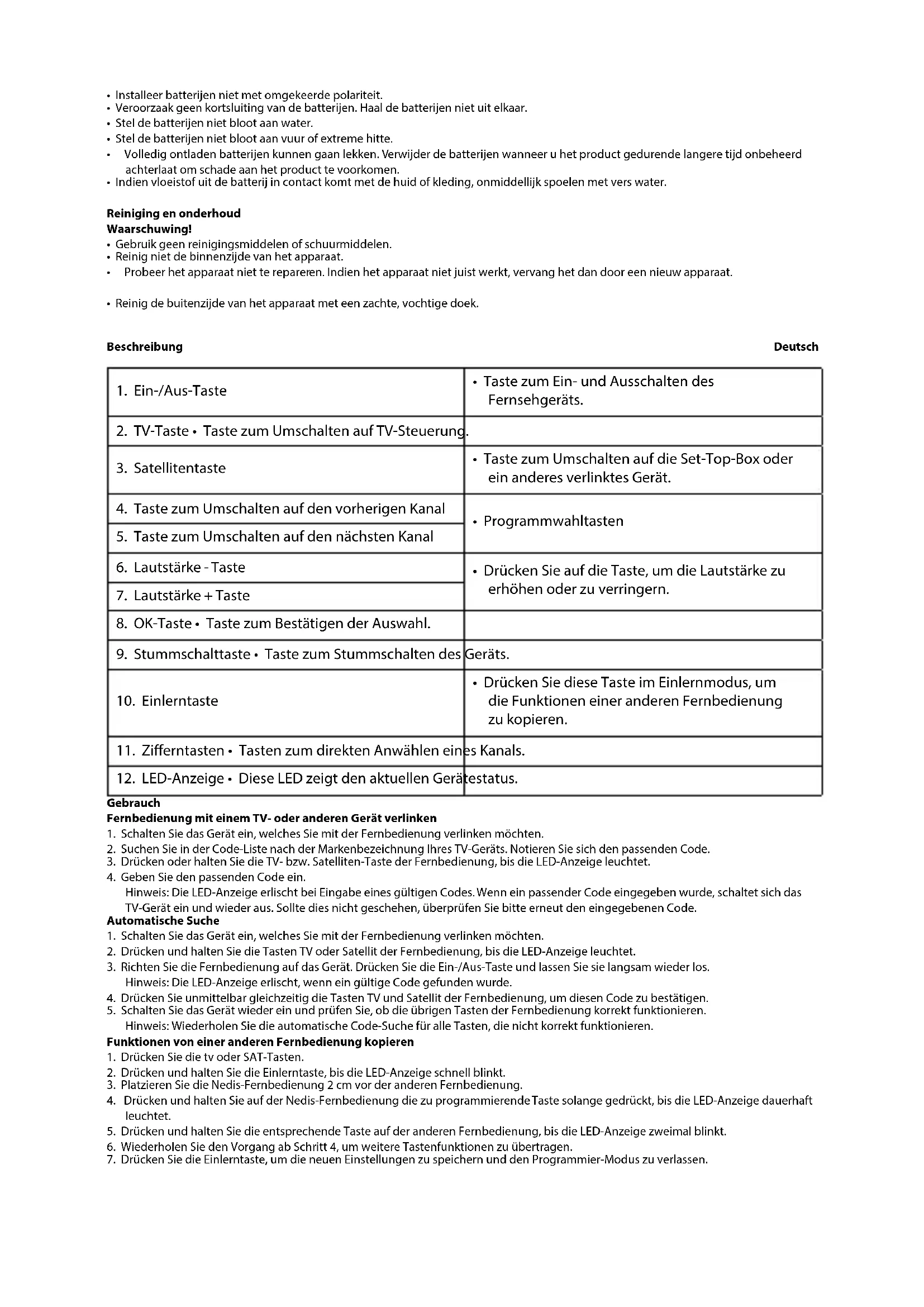 Laden Sie die Anleitung für Ihr Fernbedienung kostenlos im PDF-Format! Finden Sie Ihr Handbuch TVRC20SNBK - NEDIS und nehmen Sie Ihr elektronisches Gerät wieder in die Hand. Auf dieser Seite sind alle Dokumente veröffentlicht, die für die Verwendung Ihres Geräts notwendig sind. TVRC20SNBK von der Marke NEDIS.