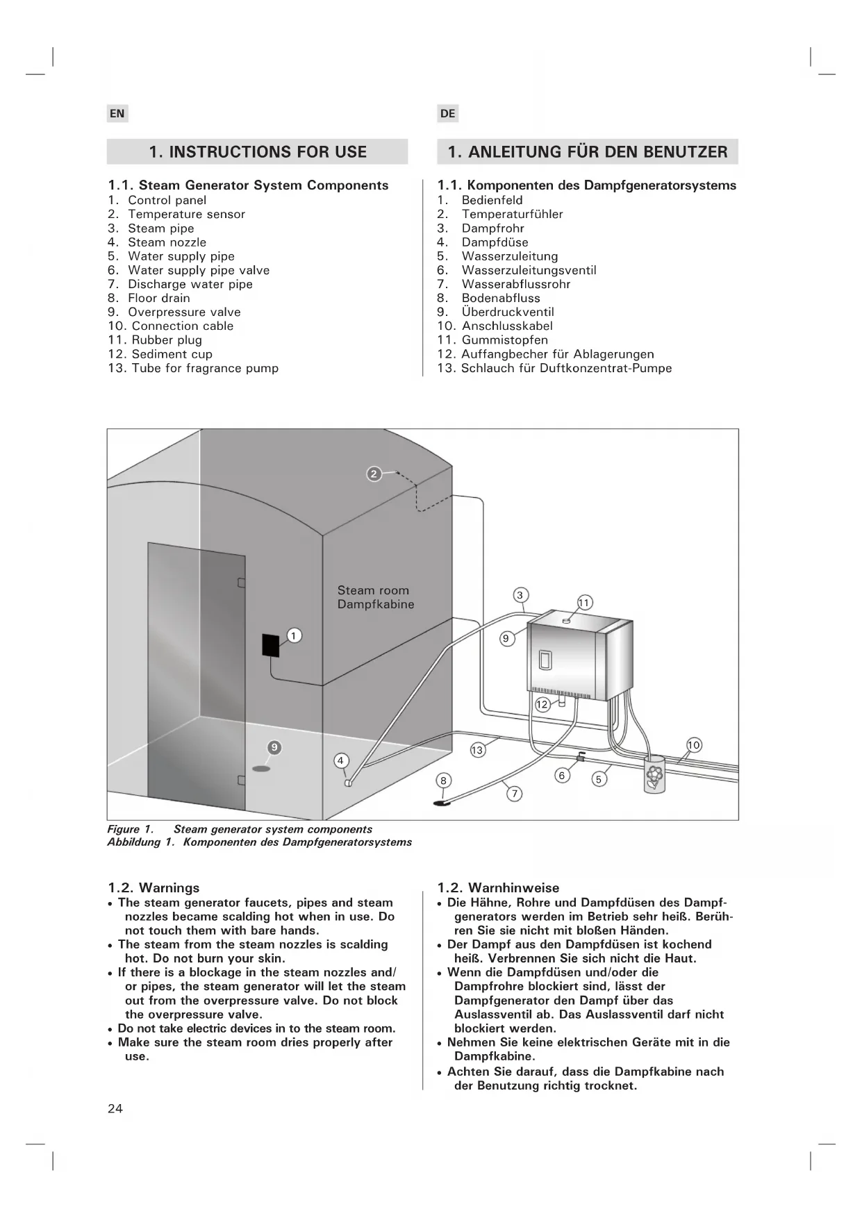- Die Garantiezeit von Dampfgeneratoren und Steuergeräten, die in Gemeinschafts-Dampfka- binen verwendet werden, beträgt ein (1) Jahr.