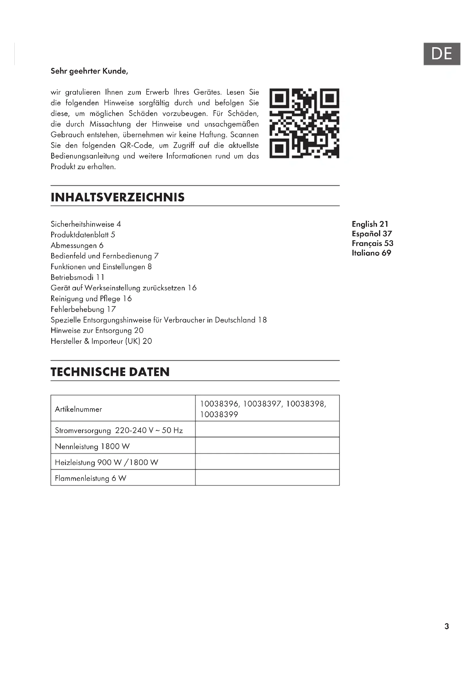 wir gratulieren Ihnen zum Erwerb ihrer Gerätes. Lesen Sie die folgenden Hinweise sorgfältig durch und befolgen Sie diese, um möglichen Schäden vorzubeugen. Für Schäden, die durch Missachtung der Hinweise und unsachgemäßigen Gebrauch entstehen, übernehmen wir keine Haftung. Scannen Sie den folgenden QR-Code, um Zugriff auf die aktuellste Bedienungsanleitung und weitere Informationen rund um das Produkt zu erhalten.