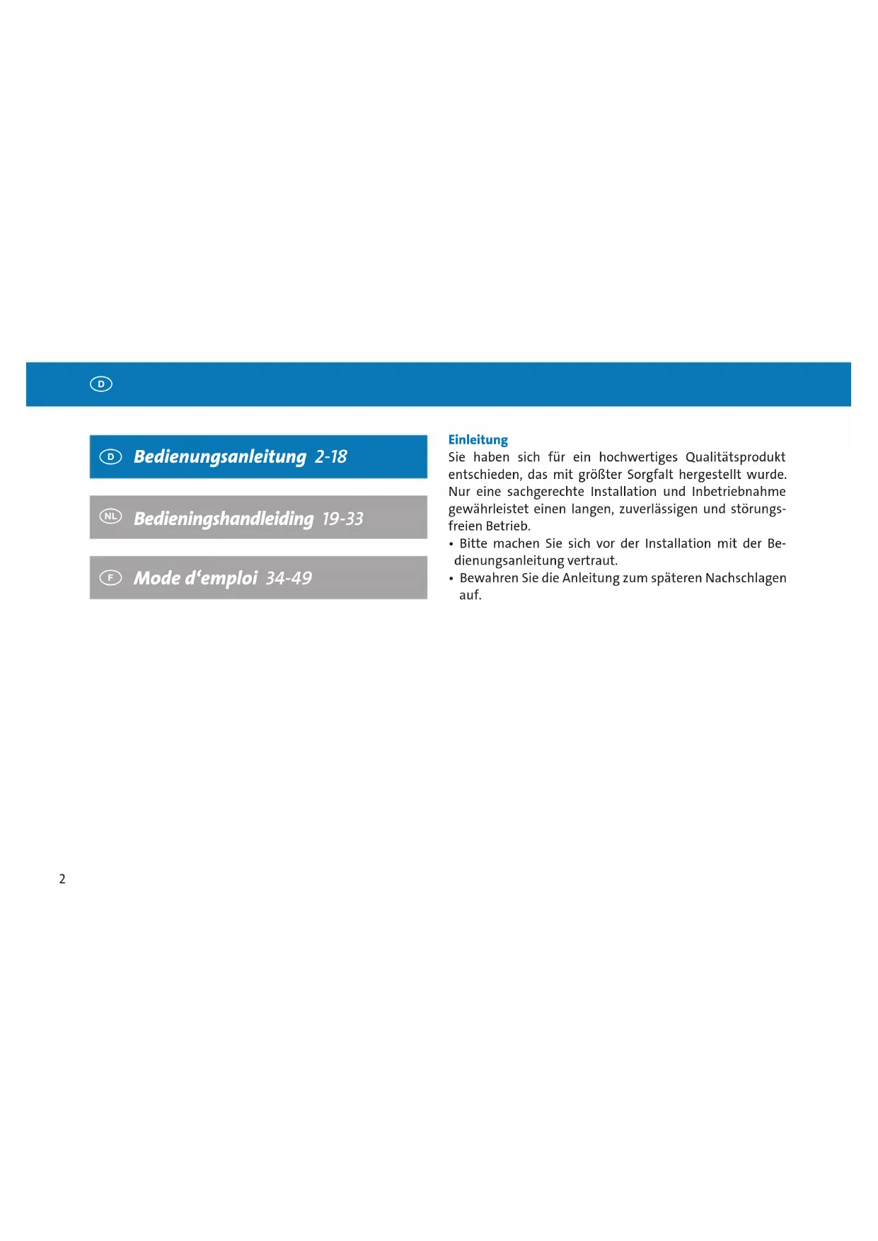 - Bitte machen Sie sich vor der Installation mit der Be- dienungsanleitung vertraut.
