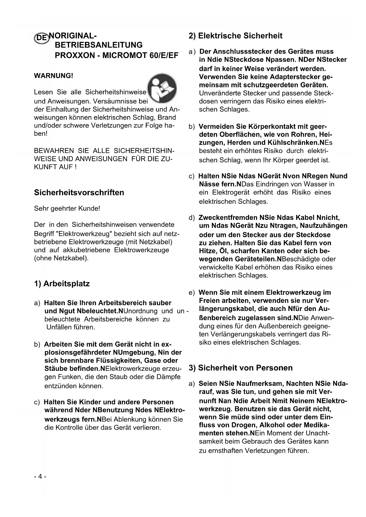 MicroMot 60E - Multifunktionswerkzeuge PROXXON - Kostenlose Bedienungsanleitung