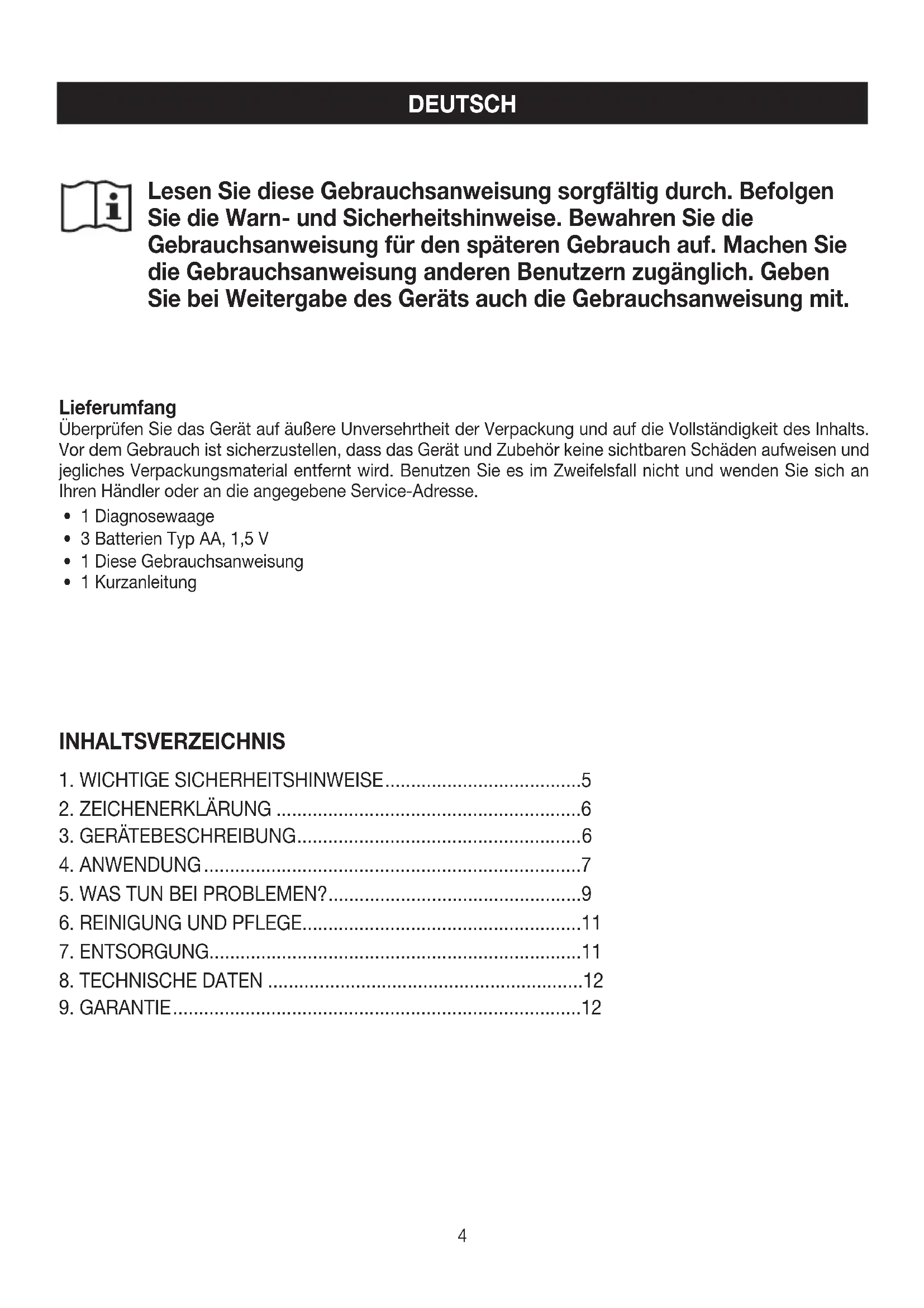 - Beachten Sie, dass technisch bedingt Messtoleranzen möglich sind, da es sich um keine geeichte Waage für den professionellen, medizinischen Gebrauch handelt.