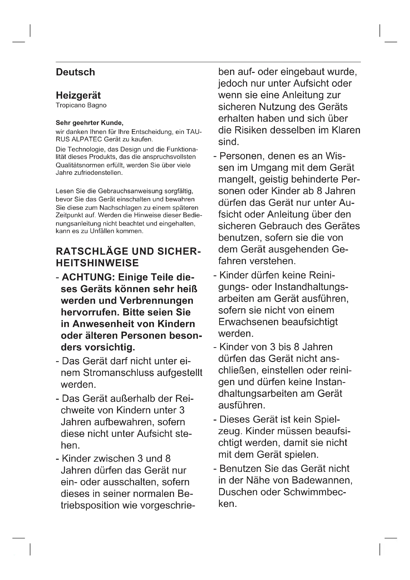 BEDIENUNGSANLEITUNG Tropicano Bagno TAURUS