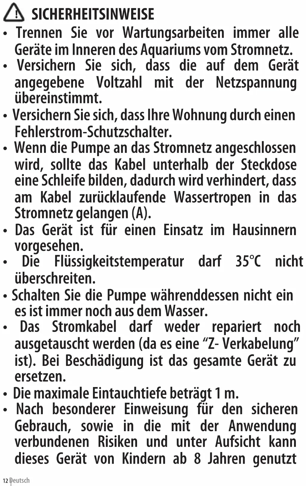 - Trennen Sie vor Wartungsarbeiten immer alle Geräte im Inneren des Aquariums vom Stromnetz.