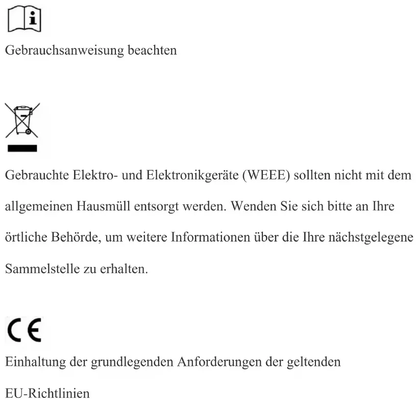 Einhaltung der grundlegenden Anforderungen der geltenden EU-RichtlinienErläuterung der Sicherheitssymbole
