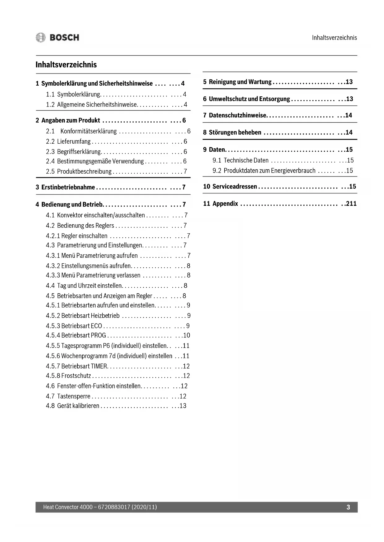 10 Serviceadressen . . . . . . . . . . . . . . . . . . . . . . . . . . . . . .15 11 Appendix . . . . . . . . . . . . . . . . . . . . . . . . . . . . . . . . . . .211Symbolerklärung und Sicherheitshinweise Heat Convector 4000 – 6720883017 (2020/11)