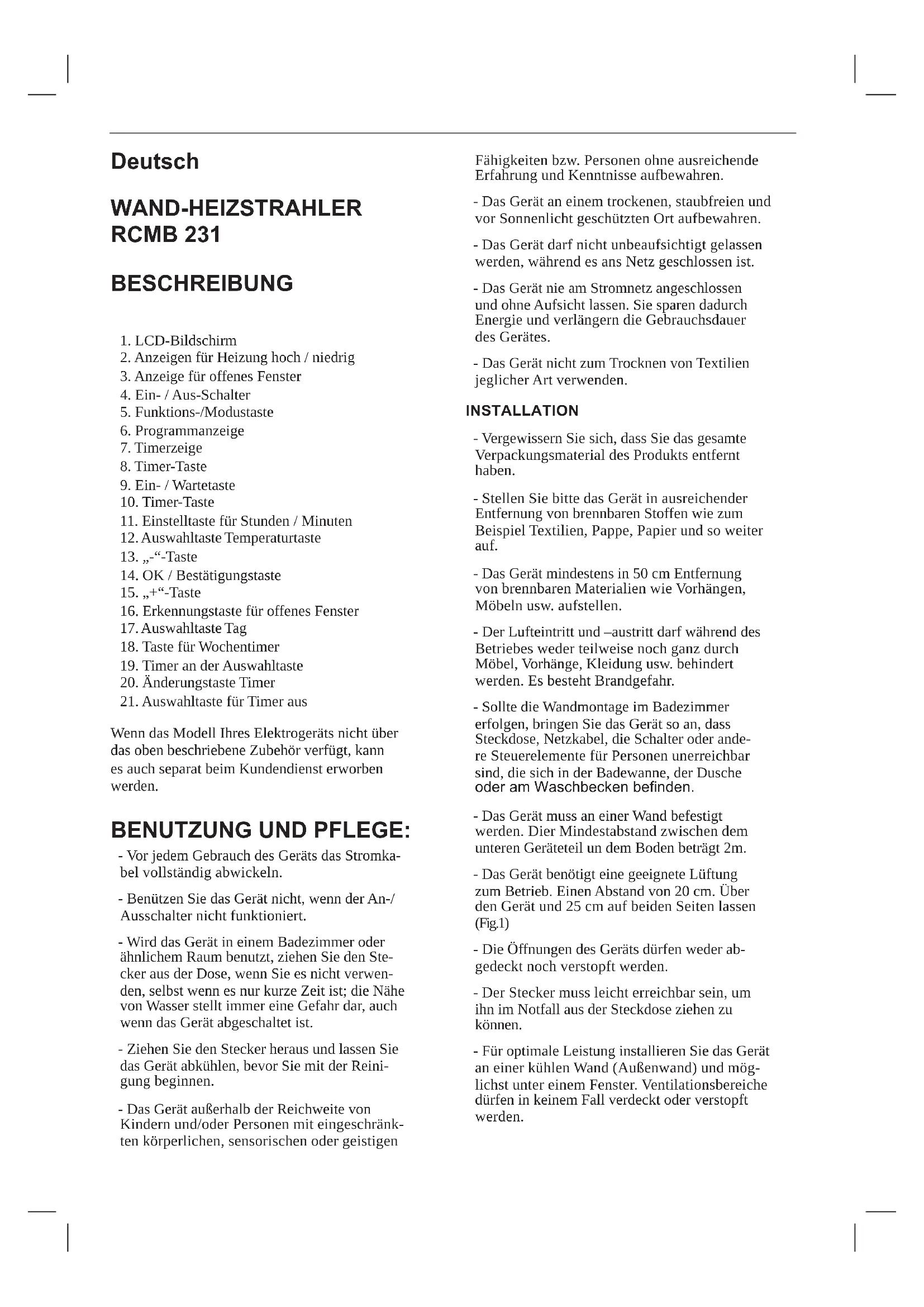 RCMB231 - Heizung TAURUS - Kostenlose Bedienungsanleitung