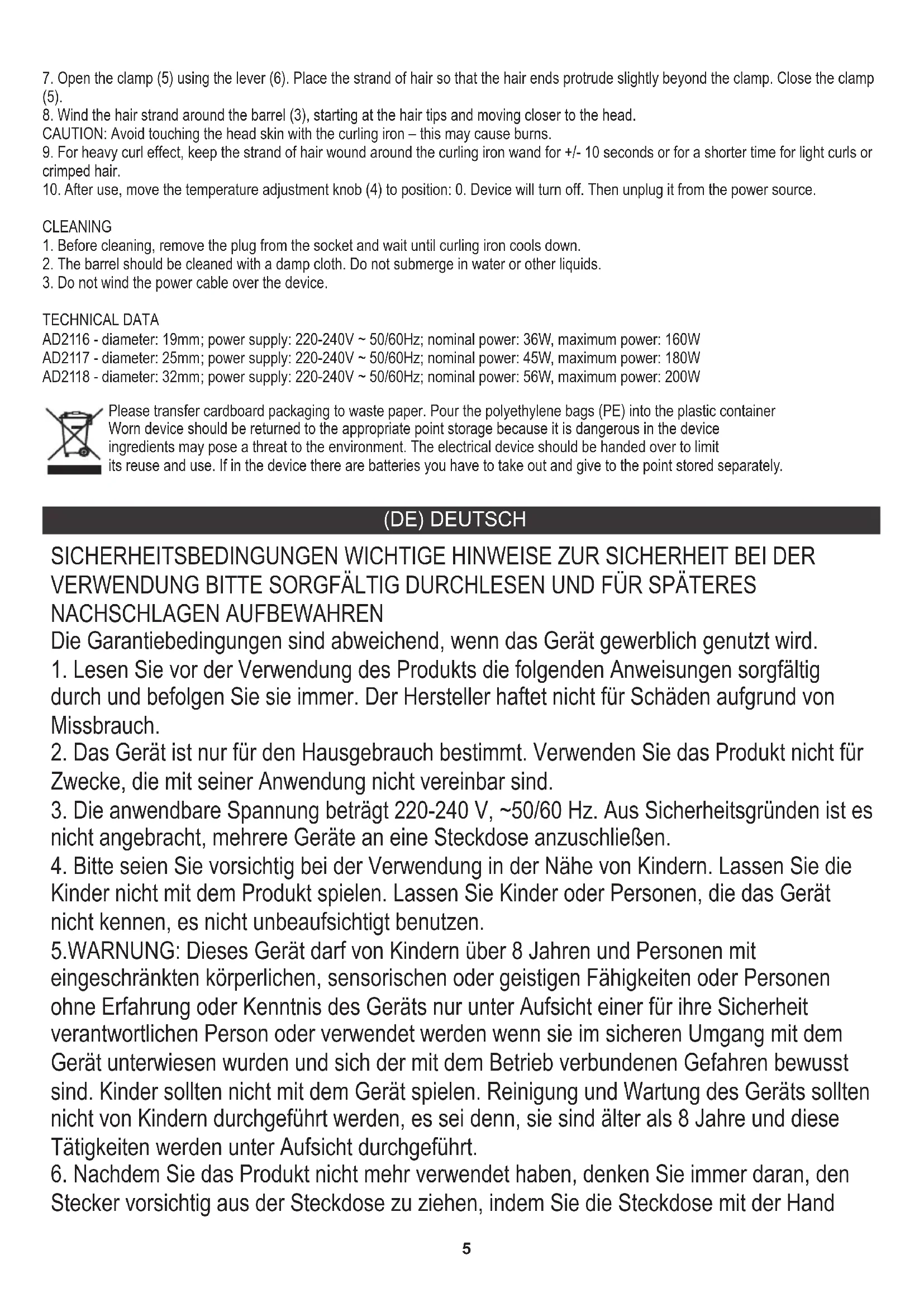 AD 2117 - Lockenstab ADLER - Kostenlose Bedienungsanleitung