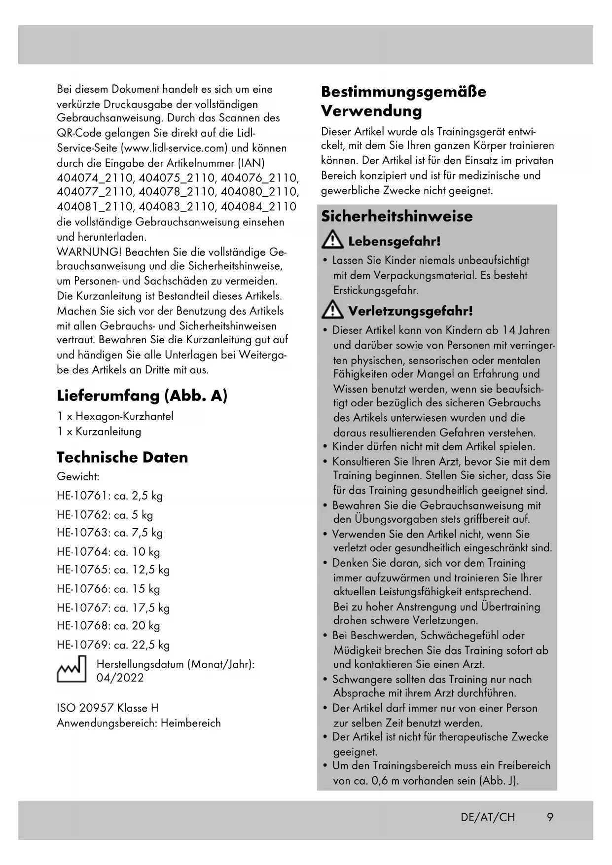Laden Sie die Anleitung für Ihr Kurzhantel kostenlos im PDF-Format! Finden Sie Ihr Handbuch IAN 404083 - CRIVIT und nehmen Sie Ihr elektronisches Gerät wieder in die Hand. Auf dieser Seite sind alle Dokumente veröffentlicht, die für die Verwendung Ihres Geräts notwendig sind. IAN 404083 von der Marke CRIVIT.