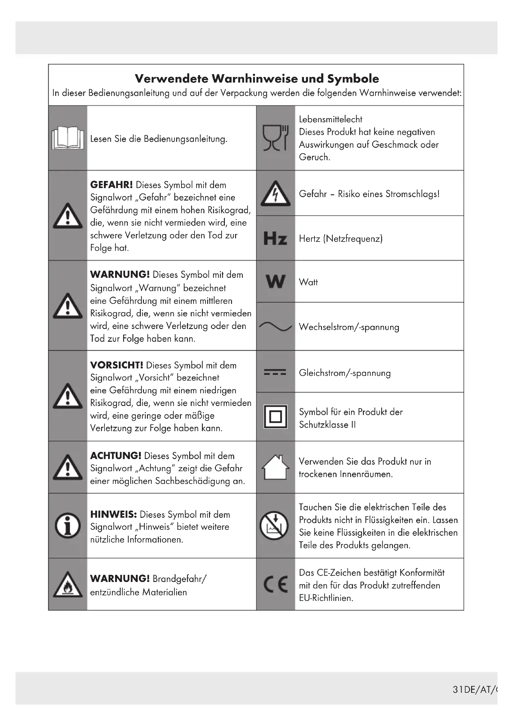 SICHERHEITSHINWEISEN UND GEBRAUCHSANWEISUNGEN