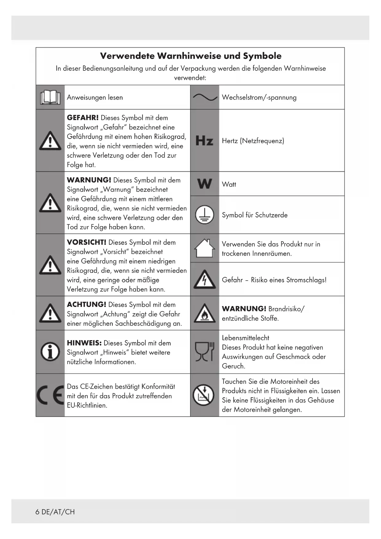 UND KINDER! Lassen Sie Kinder nicht mit dem Verpackungsmaterial unbeaufsichtigt. Das Verpackungs material stellt eine Erstickungsgefahr dar. Kinder unterschätzen die damit verbundenen Gefahren häufig. Halten Sie Kinder stets von Verpackungsmaterialien fern. Dieses Produkt kann von Kindern ab 8 Jahren und darüber sowie von Personen mit verringerten physischen, sensorischen oder mentalen Fähigkeiten oder Mangel an Erfahrung und Wissen benutzt werden, wenn sie beaufsichtigt werden oder bezüglich des sicheren Gebrauchs des Produkts unterwiesen wurden und die daraus resultierenden Gefahren verstehen. Kinder dürfen nicht mit dem Produkt spielen. Reinigung und Benutzer- Wartung dürfen nicht von Kindern ohne Beaufsichtigung durchgeführt werden.9DE/AT/CH