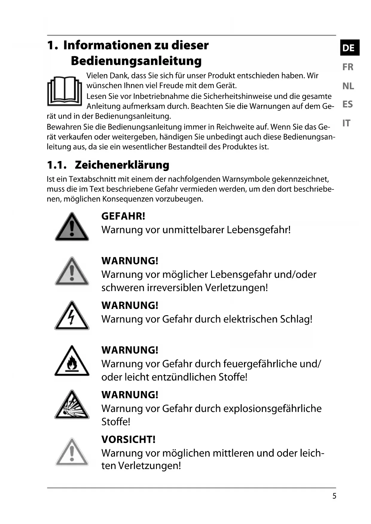 1. Informationen zu dieser Bedienungsanleitung ........................................ 5