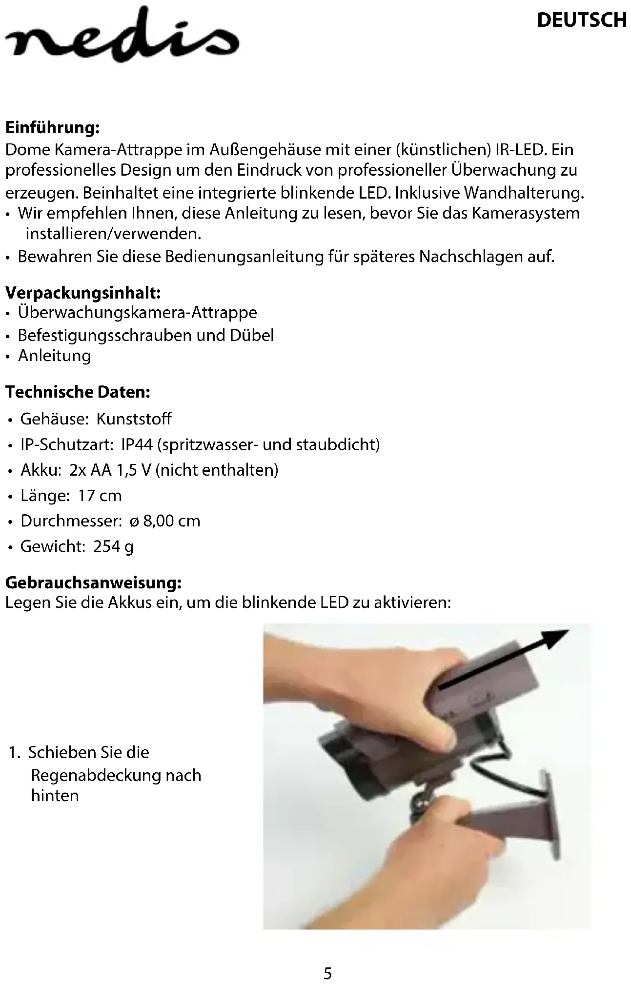 DUMCB40GY - Überwachungskamera NEDIS - Kostenlose Bedienungsanleitung