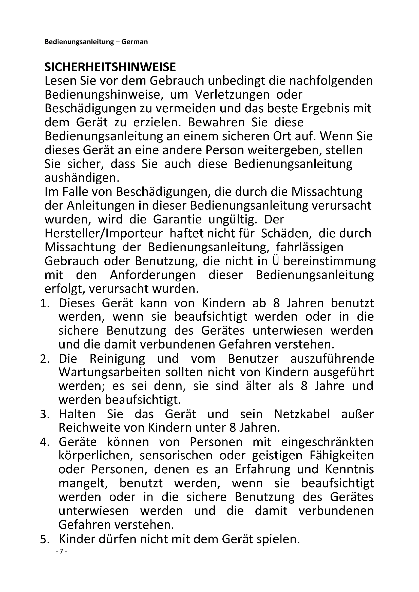 5. Kinder dürfen nicht mit dem Gerät spielen.- 8 -