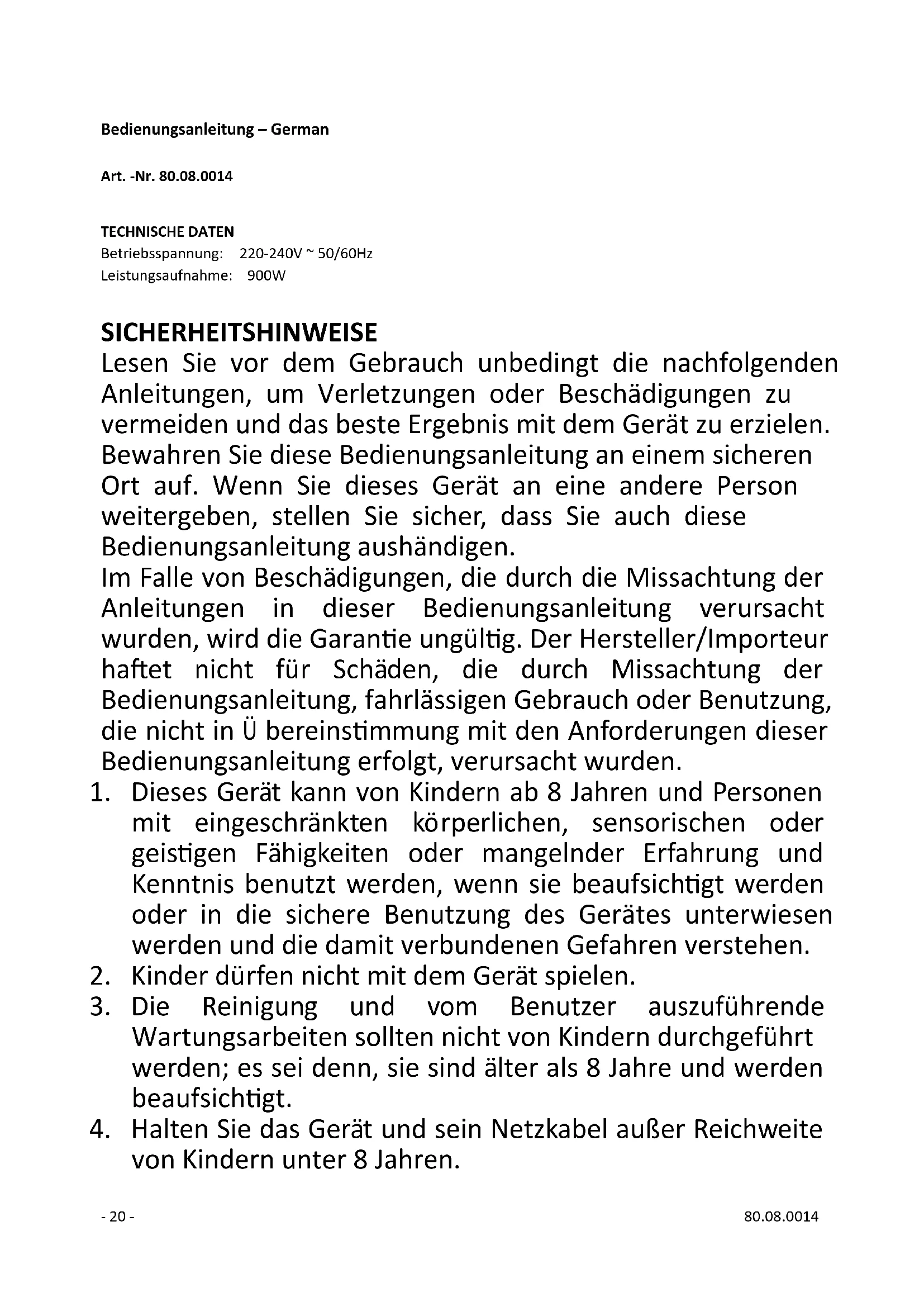 von Kindern unter 8 Jahren.- 21 - 80.08.0014