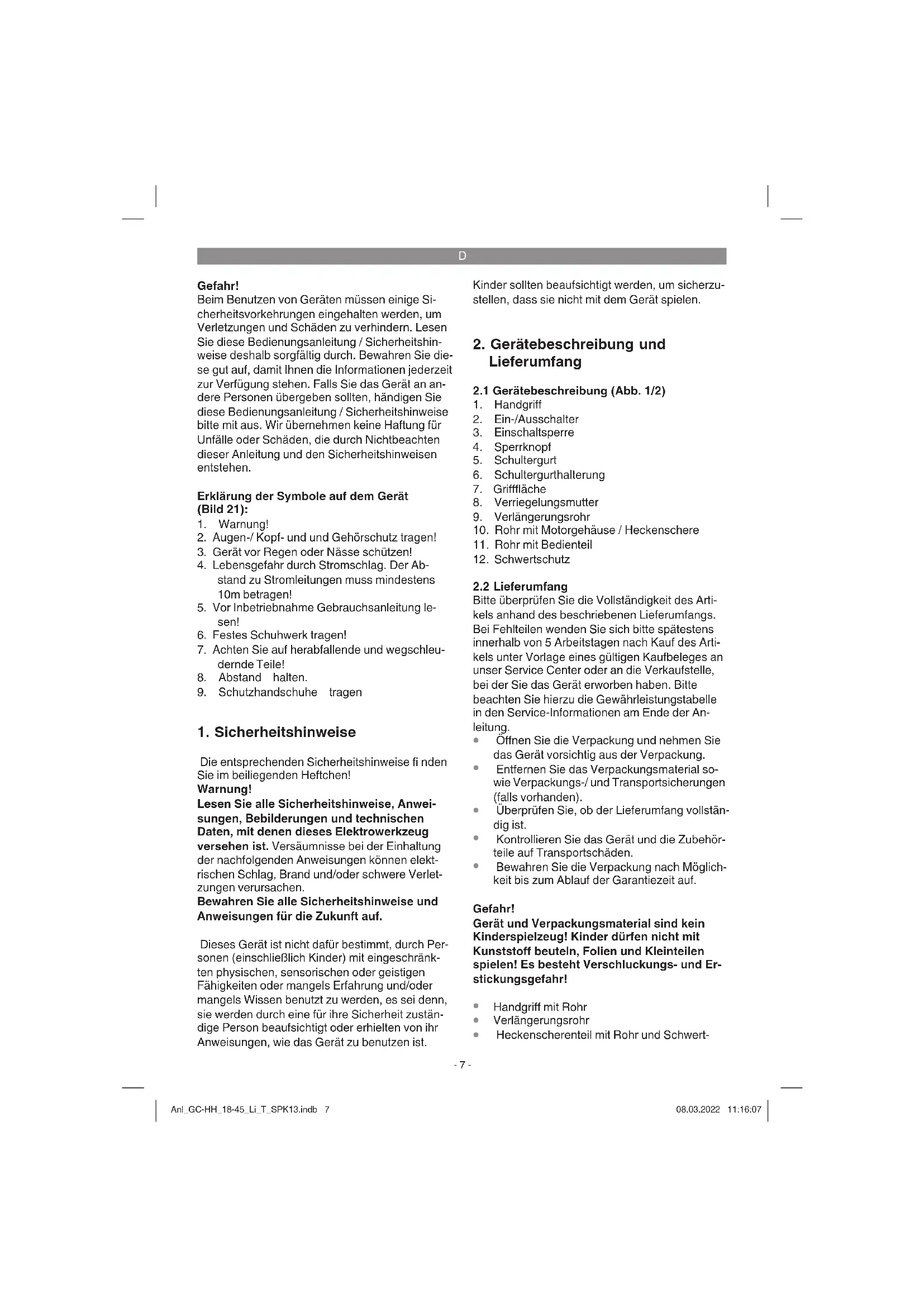 Heckenscherenteil mit Rohr und Schwert- Anl_GC-HH_18-45_Li_T_SPK13.indb 7Anl_GC-HH_18-45_Li_T_SPK13.indb 7 08.03.2022 11:16:0708.03.2022 11:16:07D