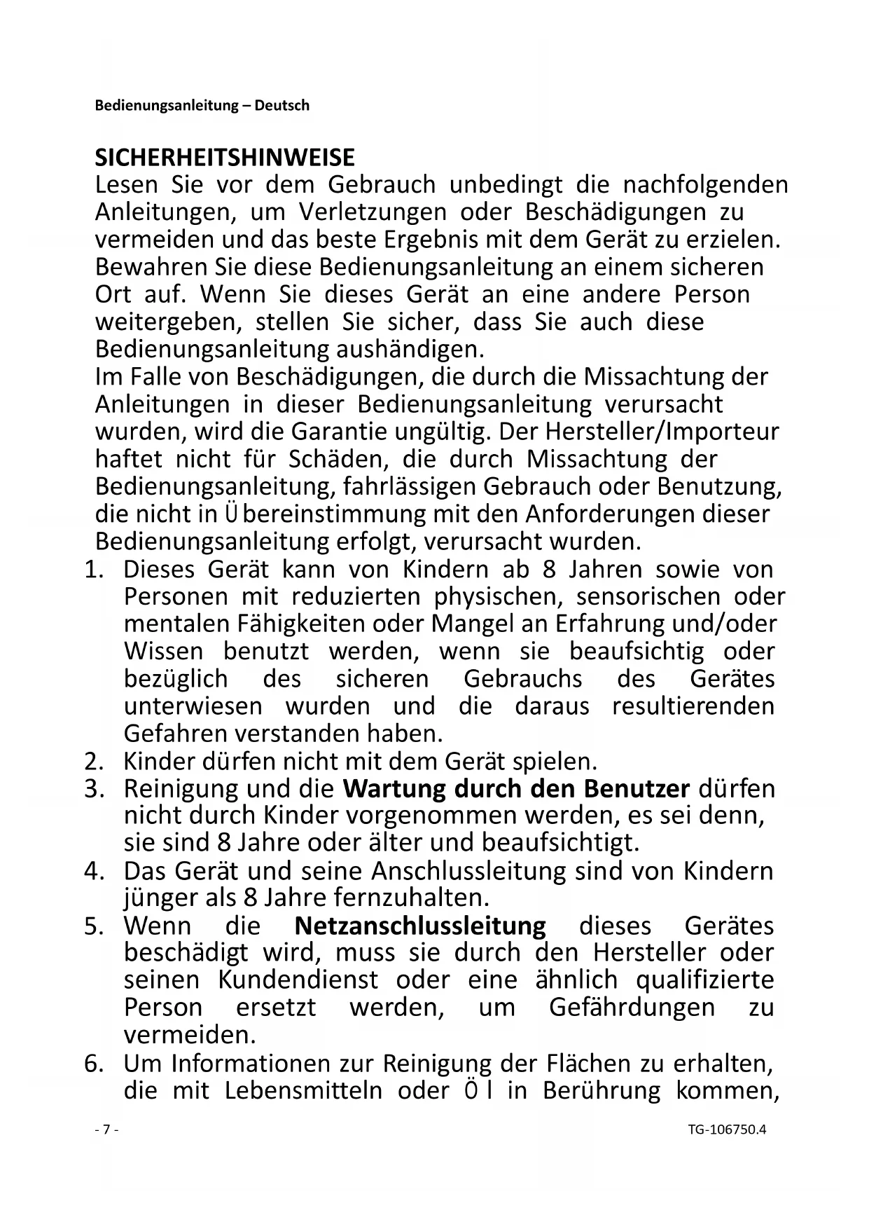 unbeaufsichtigt.- 9 - TG-106750.4