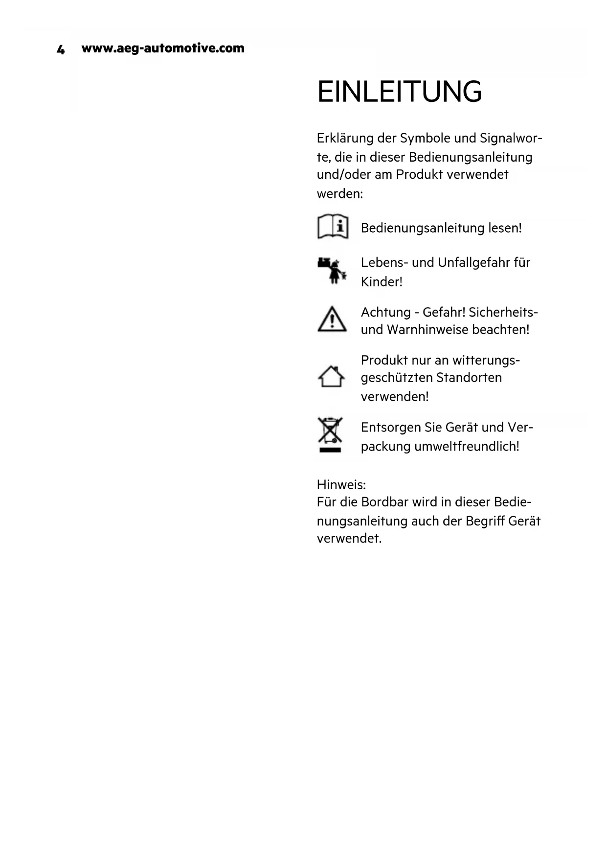 Lassen Sie die Bordbar nicht länger als nötig geönet.www.aeg-automotive.com