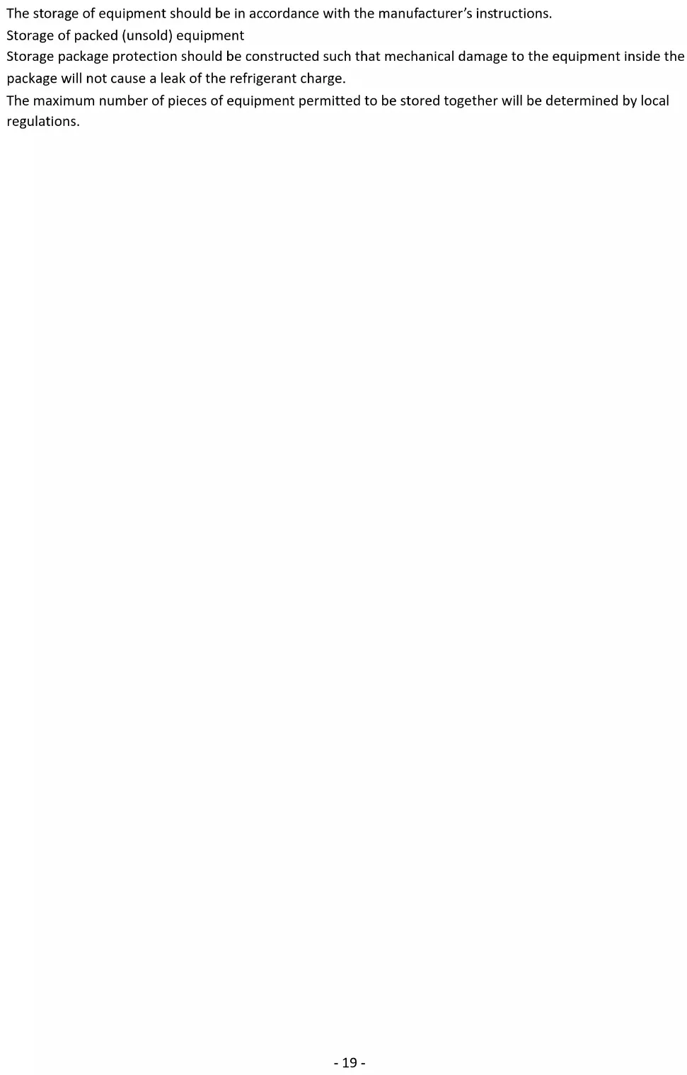 - Tragbare Geräte müssen im Freien oder in einer Werkstatt repariert werden, die für die Reparatur von Anlagen mit zündfähigen Kältemitteln besonders ausgestattet ist.