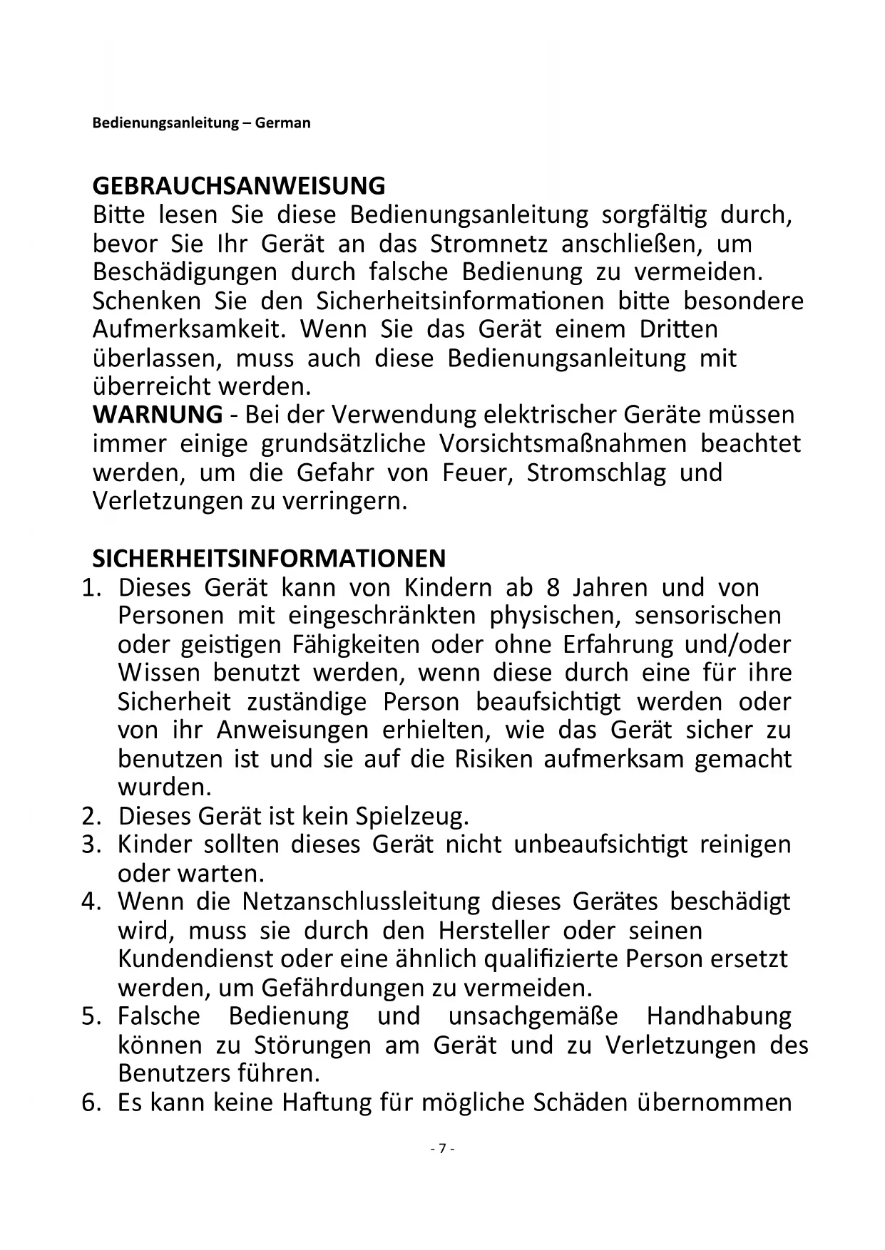 6. Es kann keine Haftung für mögliche Schäden übernommen- 8 -