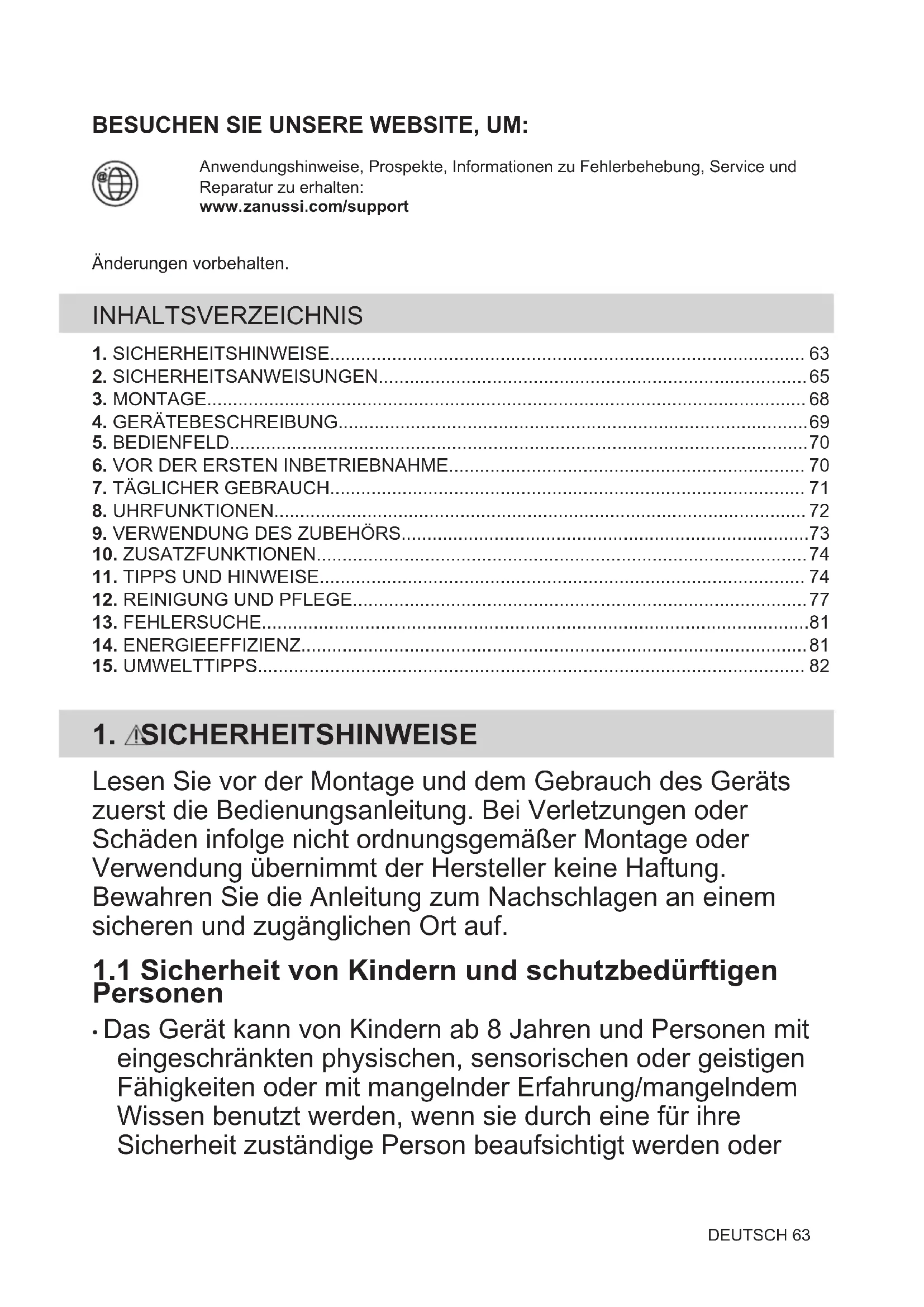 BEDIENUNGSANLEITUNG ZOHIE2X2 ZANUSSI
